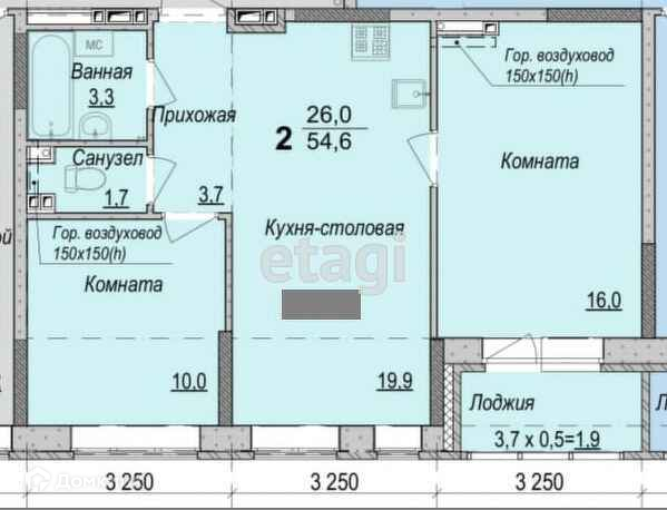 Общая площадь 55 м2