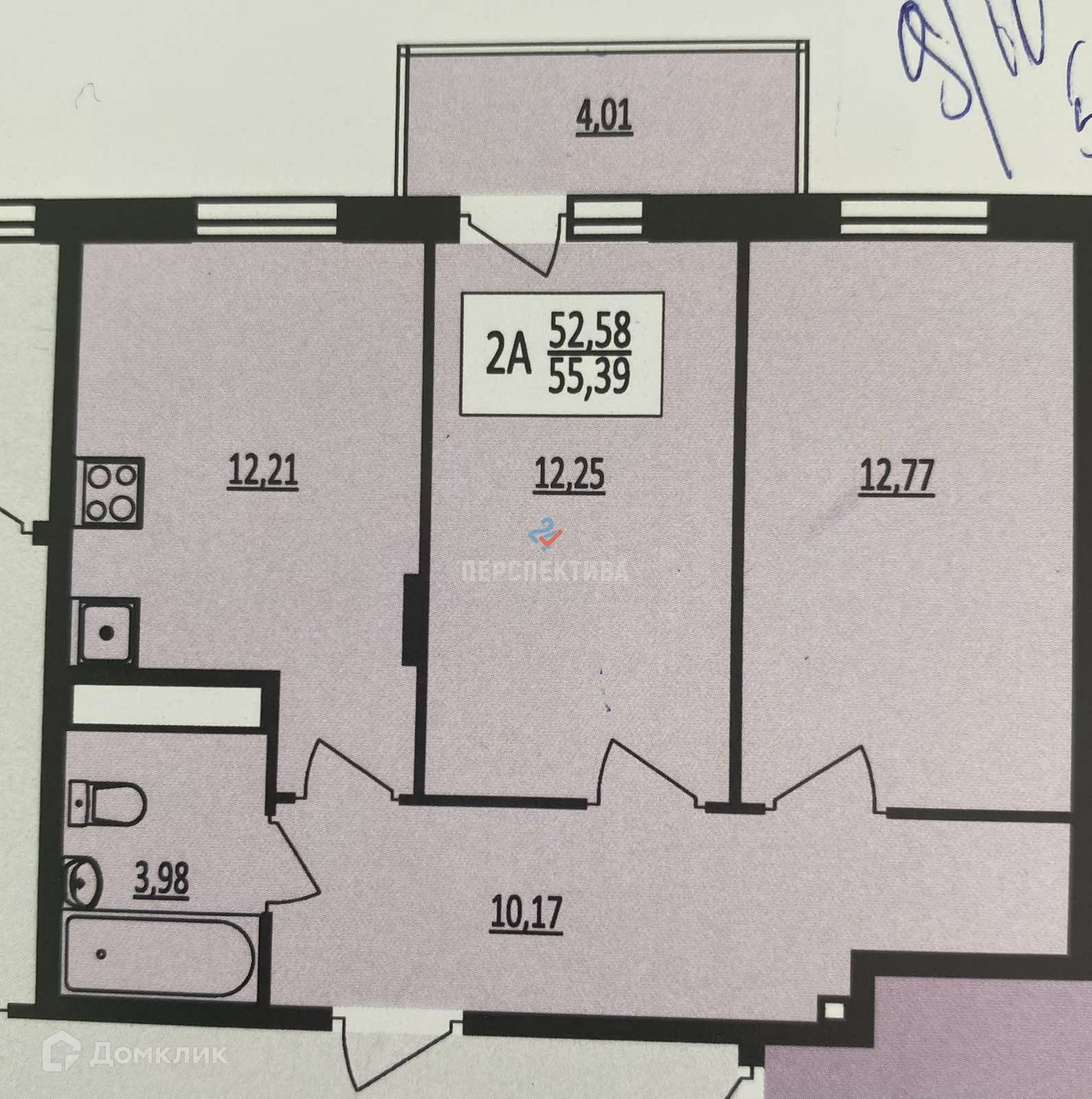 Общая площадь 52 м2