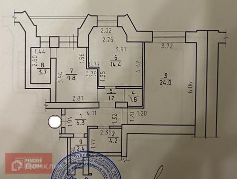 Площадь кухни 9.8 м2