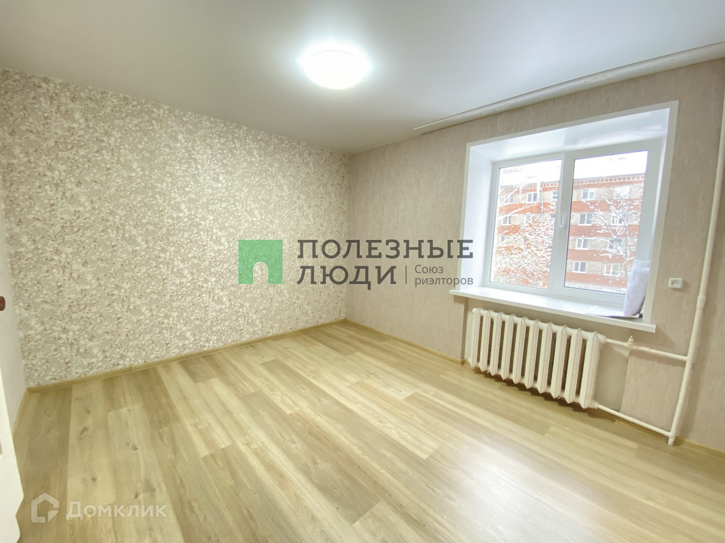 на полу ламинат, натяжной потолок