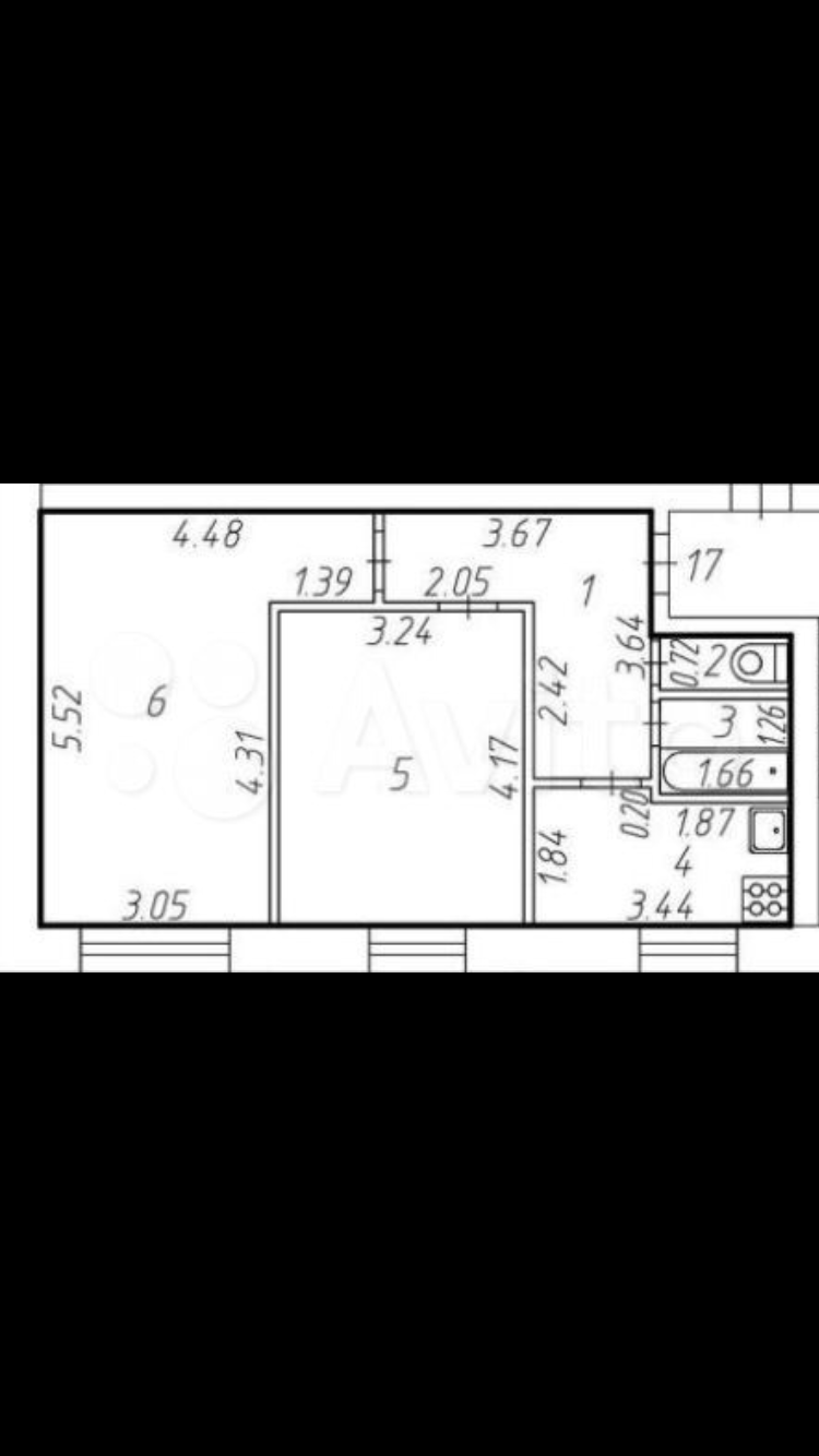 Площадь кухни 4 м2