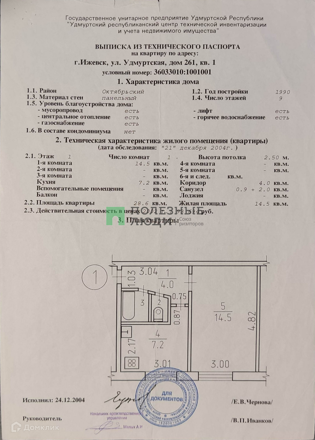 1-комнатная квартира, 28.6 м2, этаж 1 / 9, на продажу в Ижевске, Удмуртская улица, 261
