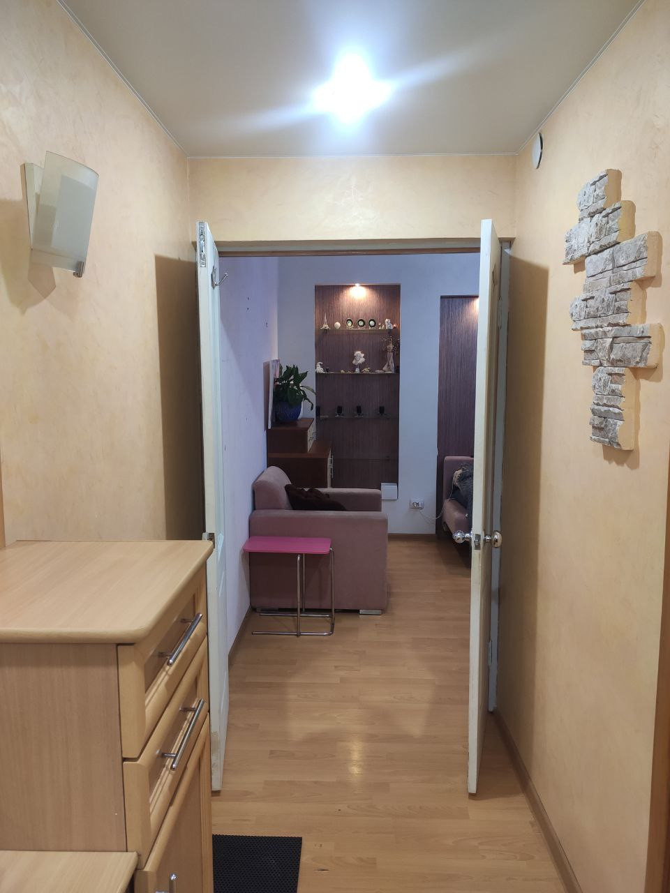 Полы: прихожая, кухня, с/у - керамогранит; коридор, комнаты - ламинат. Потолки натяжные по всей квартире. Все окна - пластик. Окна "смотрят" во двор (не на улицу), на южную сторону. Трубы ХВС, ГВС, канализации - пластик. Счётчики ХВС и ГВС.