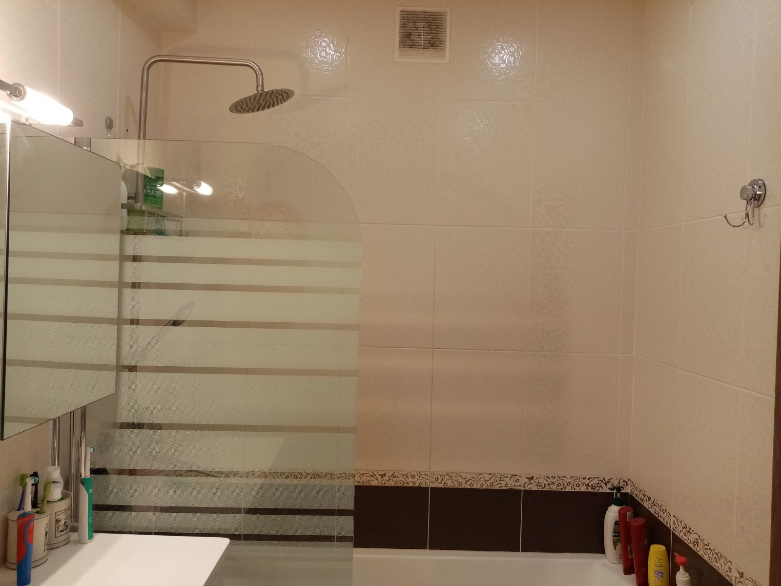 Просторная и светлая, с современной планировкой и свежим ремонтом: хороший ламинат в комнате, в совмещённом санузле плитка, в зоне кухни, коридора, санузла и гардеробной тёплые полы, огромная лоджия застеклена, утеплена и освещена (практически + ещё одна жилая комната/кабинет/детская).