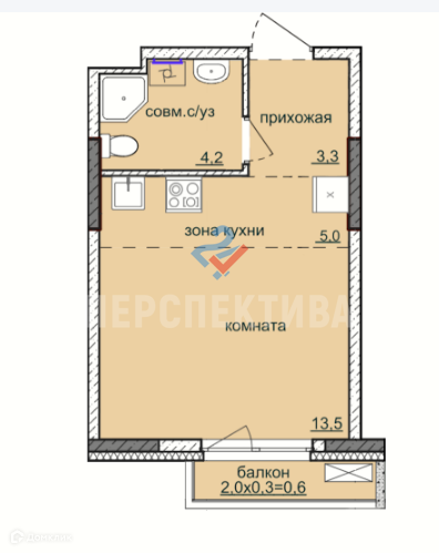 Общая площадь 27 м2