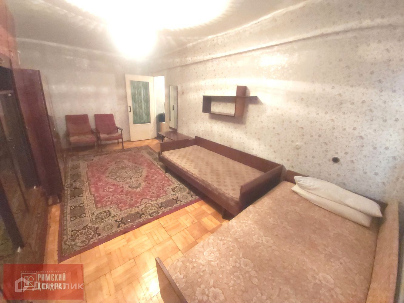-Пол - паркет в комнате, в прихожей и кухне деревянный.