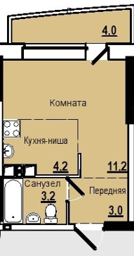 Площадь кухни 4 м2