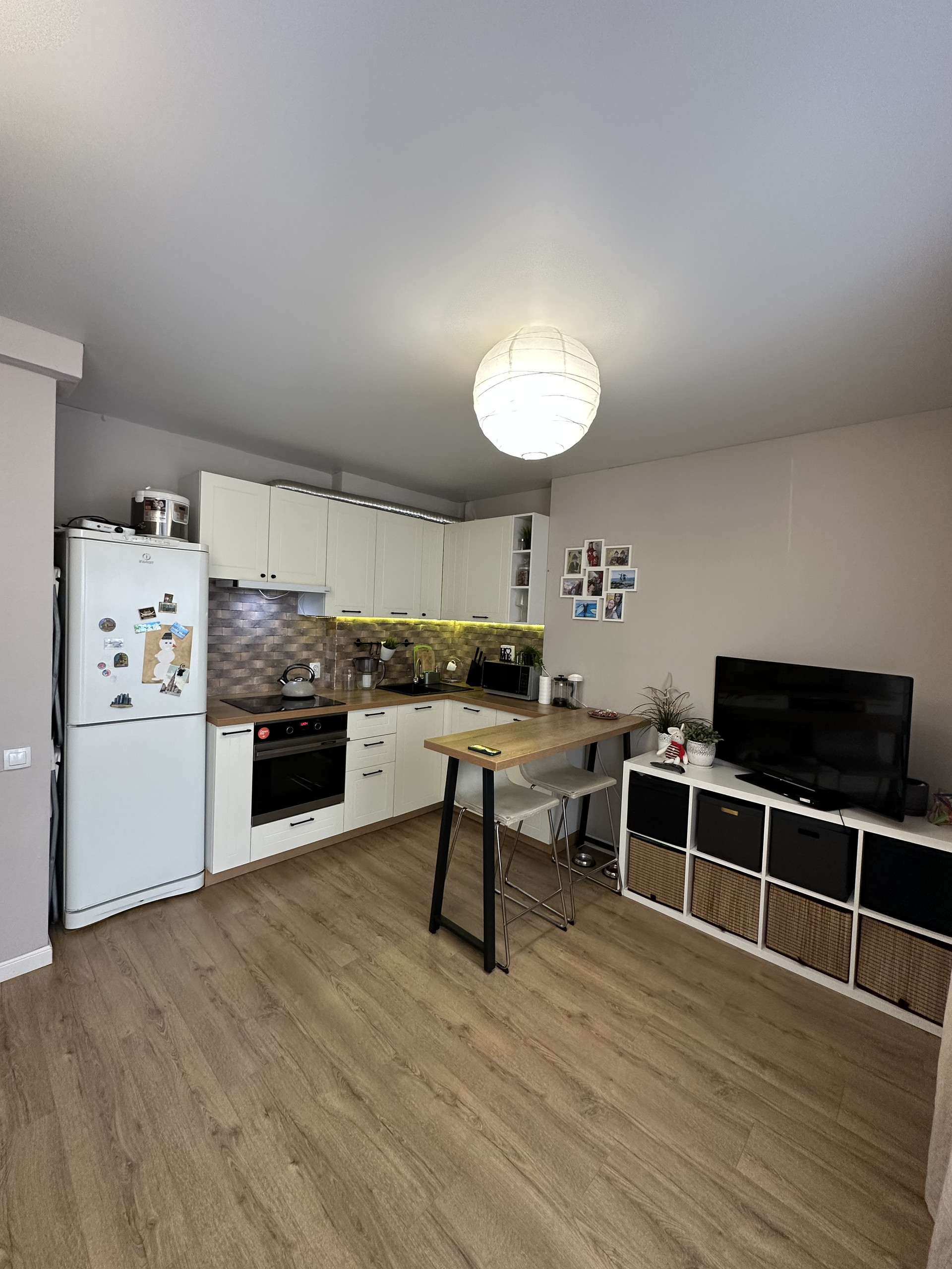 Хорошее состояние квартиры. Новым собственникам в подарок остается кухонный гарнитур с встроенной техникой.