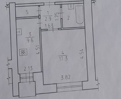 Жилая площадь 17.1 м2