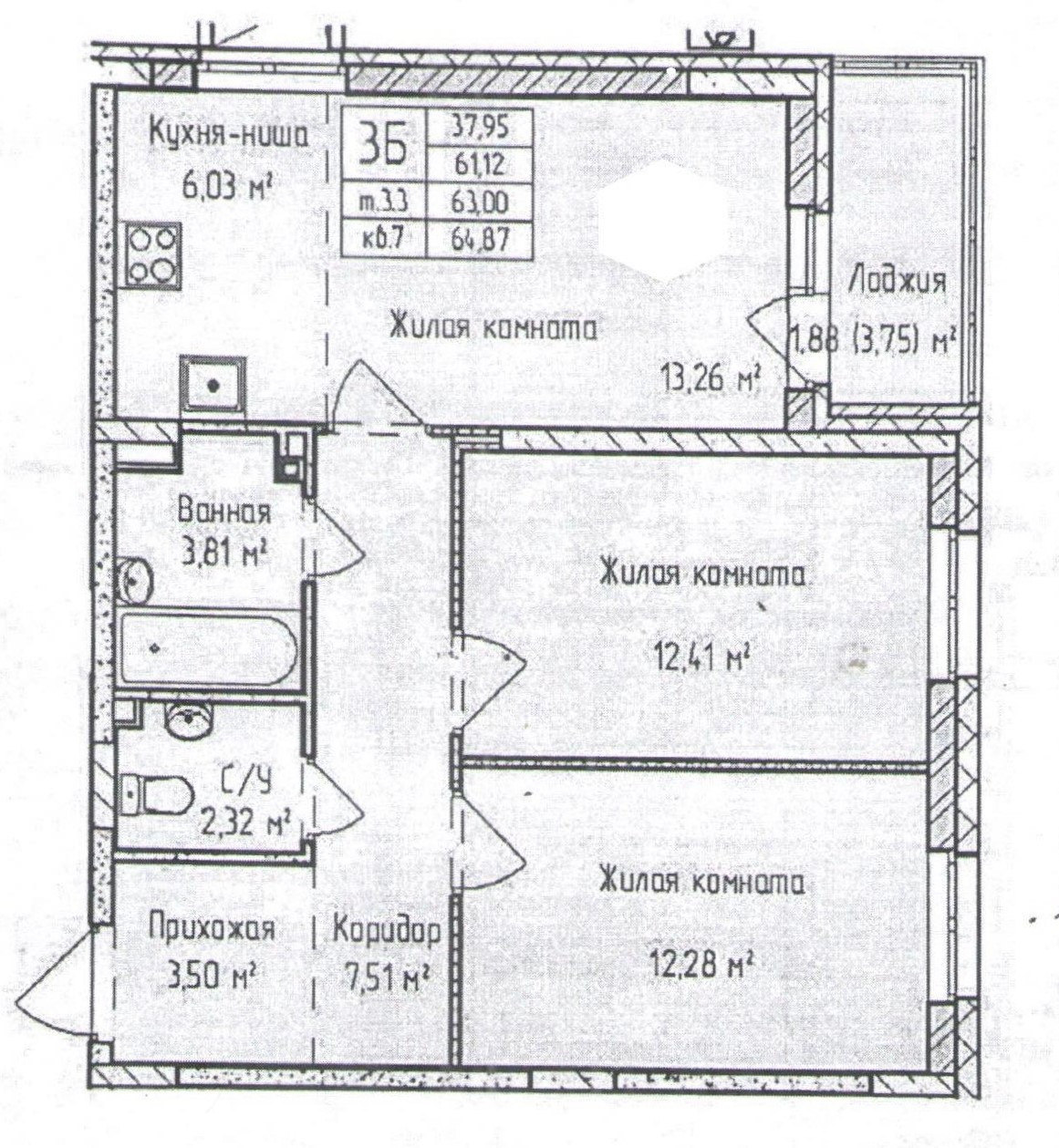 Общая площадь 61 м2