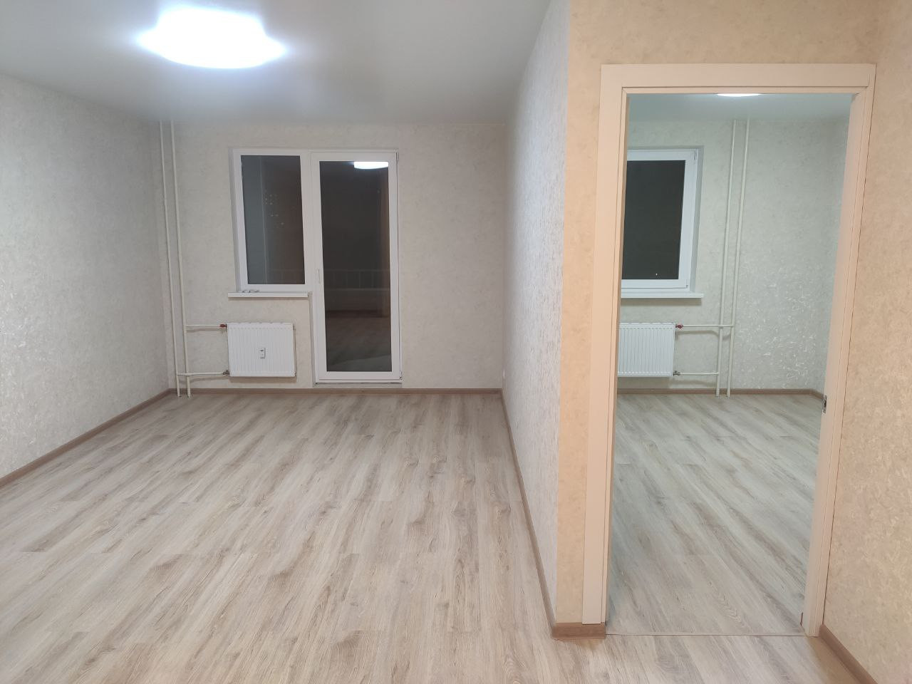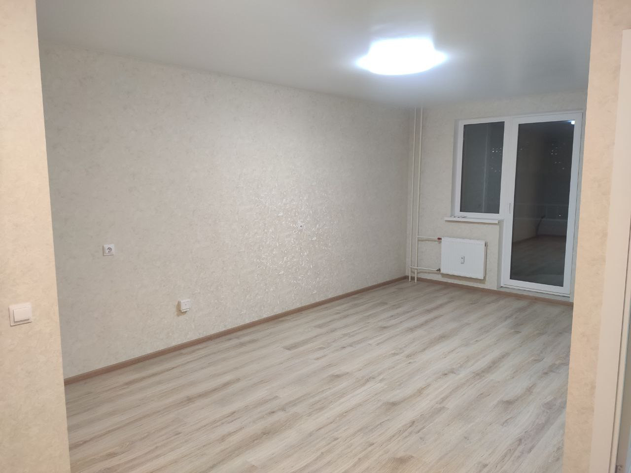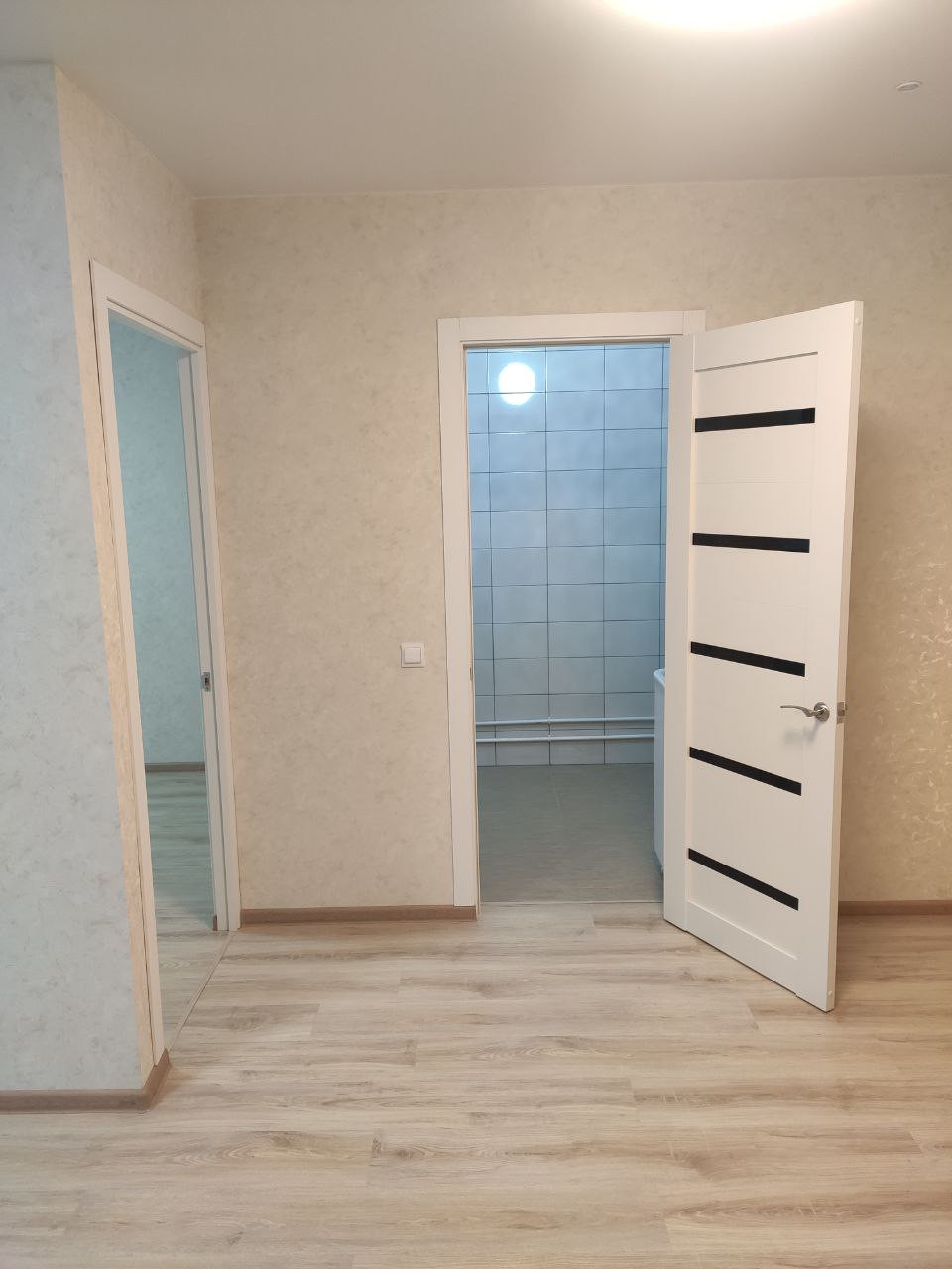 Свежий ремонт, сантехника. Ремонт не от застройщика, делали сами. Ламинат 33 класса.