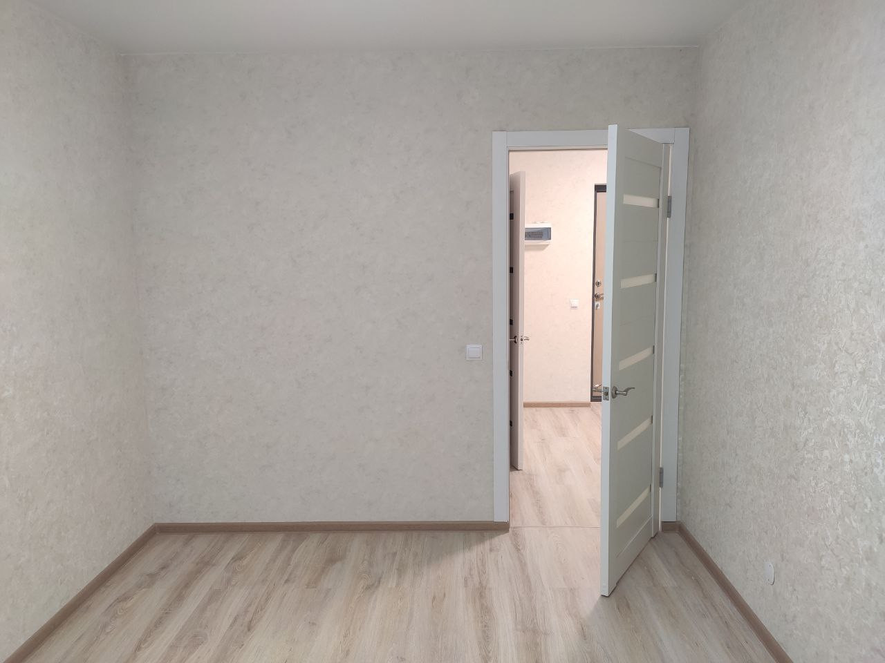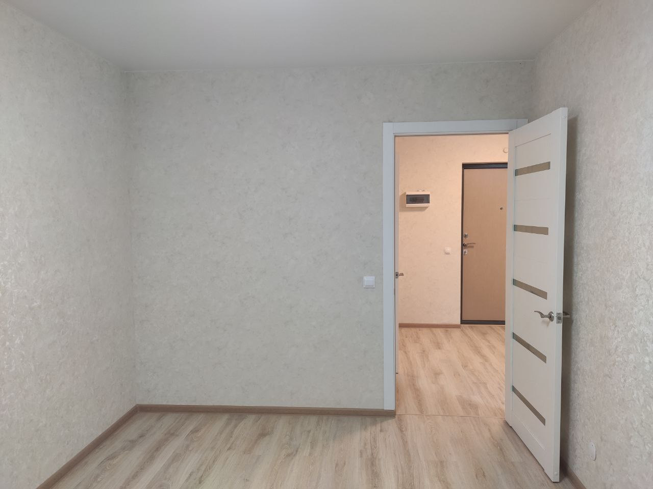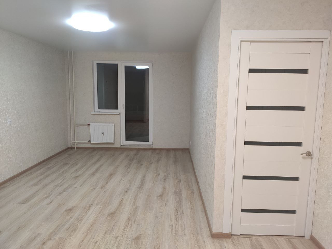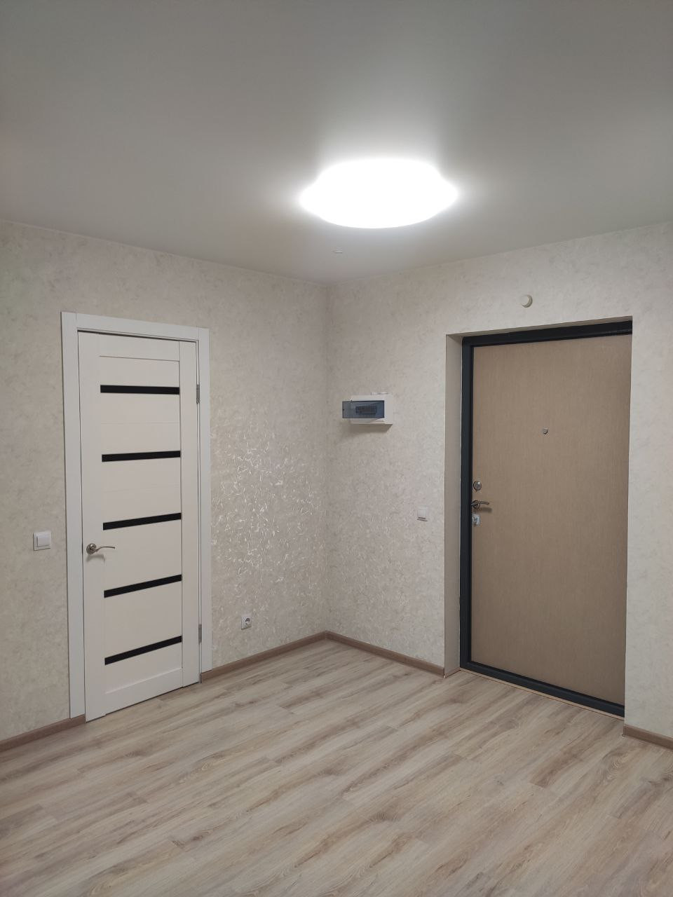Свежий ремонт, сантехника. Ремонт не от застройщика, делали сами. Ламинат 33 класса.