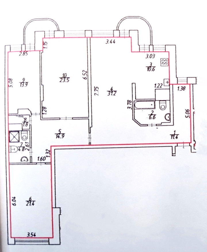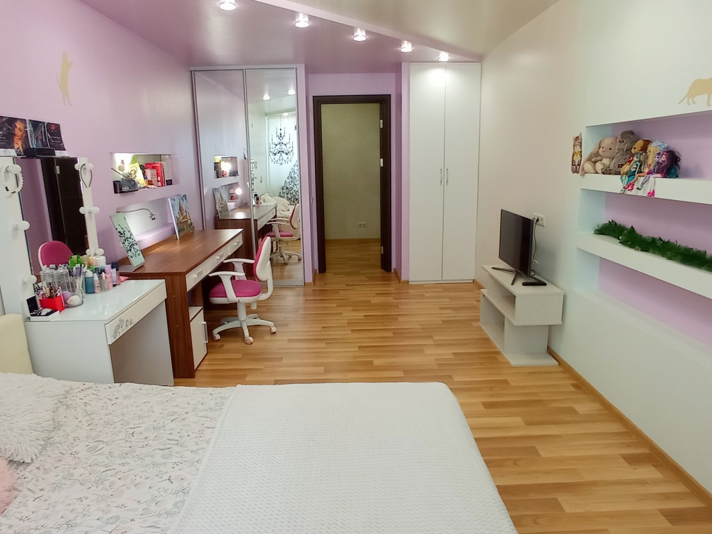 + Одна из спален (21,4 м²) имеет гардеробную комнату, 2 другие (23,5 м² и 14 м²) - оборудованы встроенными зеркальными шкафами.