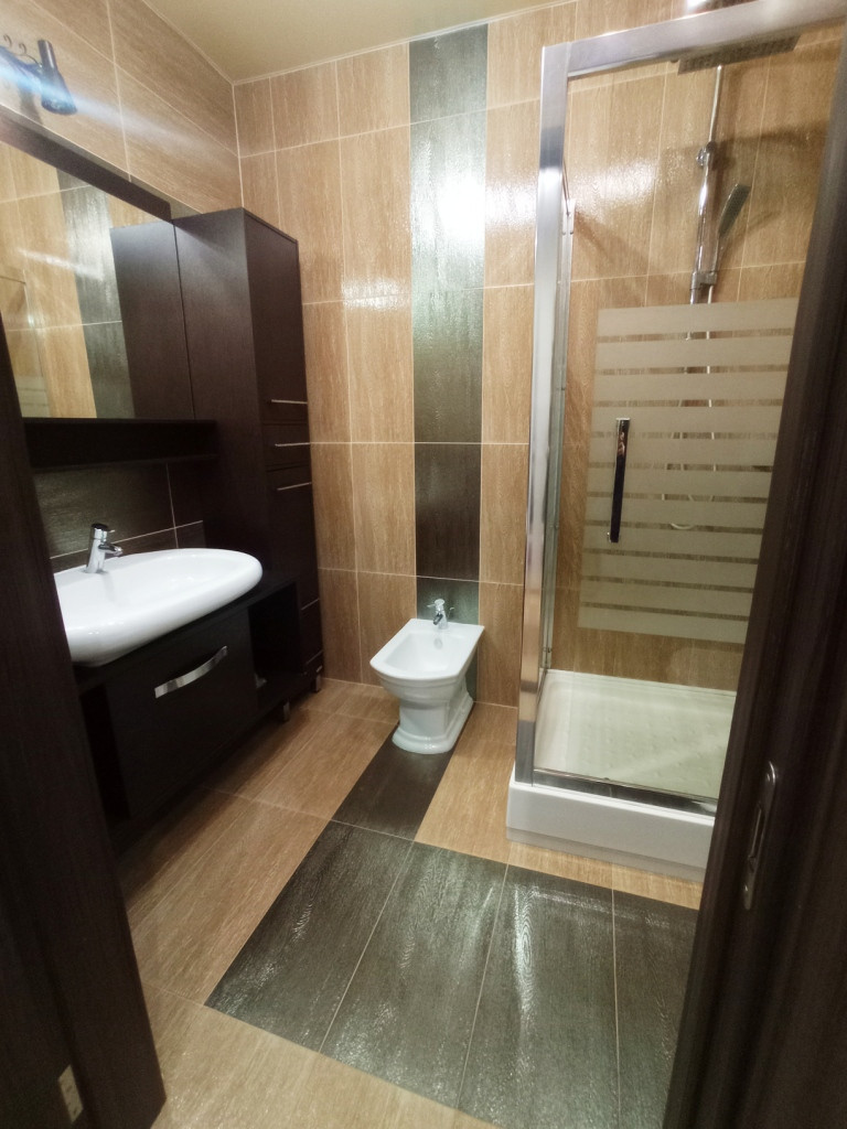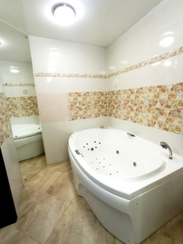 + При входе в квартиру расположен САНУЗЕЛ с большой ванной – джакузи, отделанный плиткой из коллекций испанских производителей.