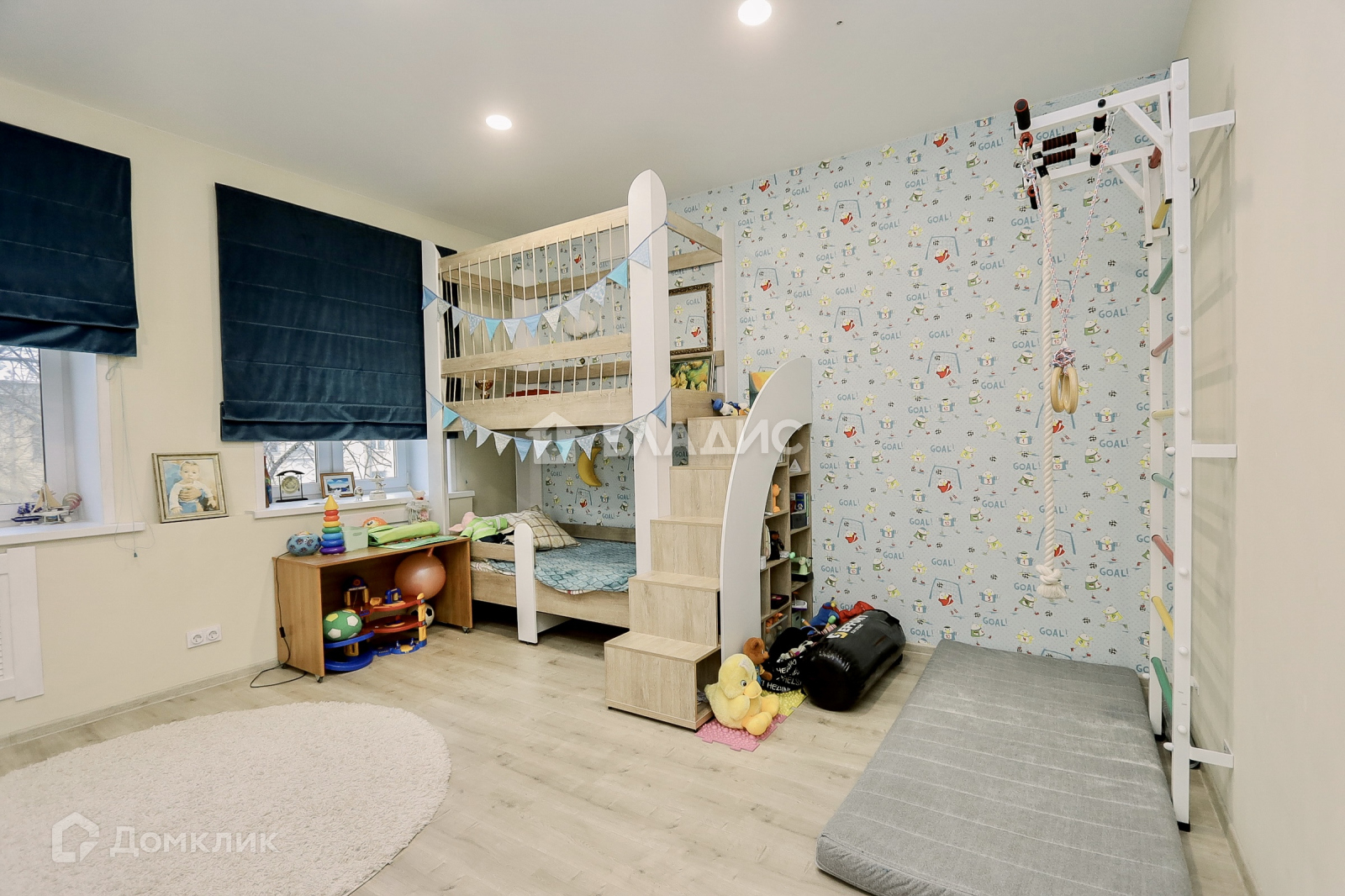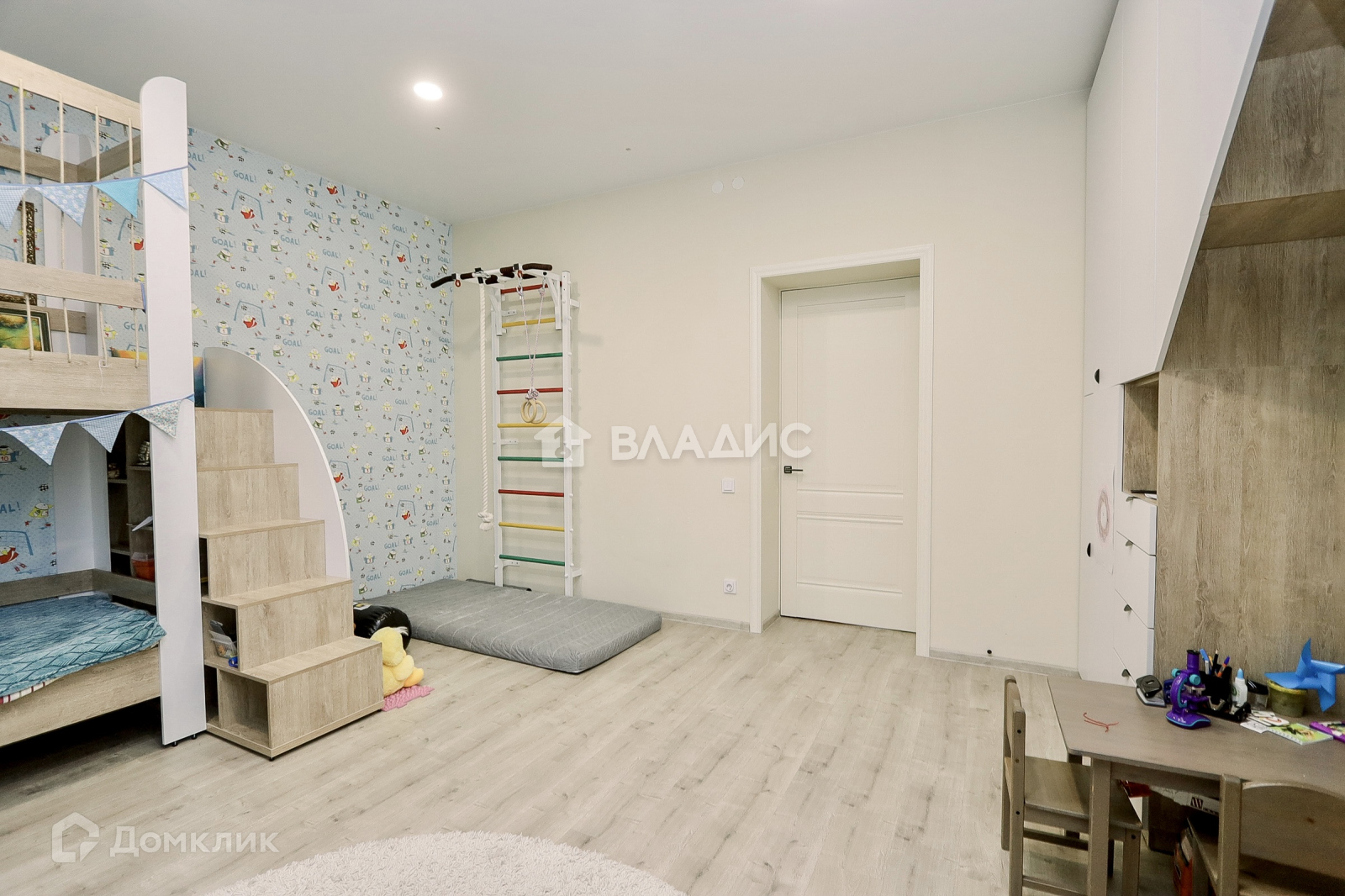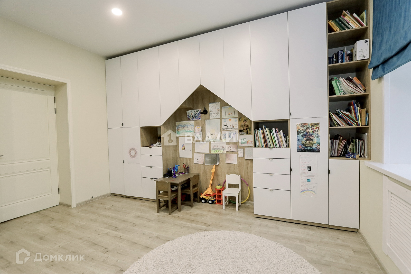 Большая детская комната, в которой есть место для игр.