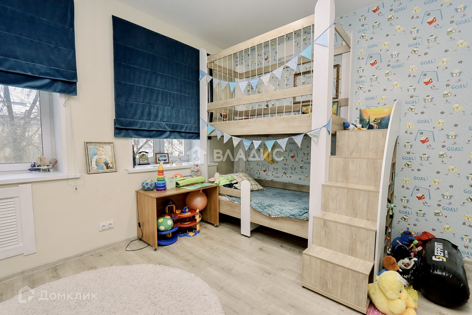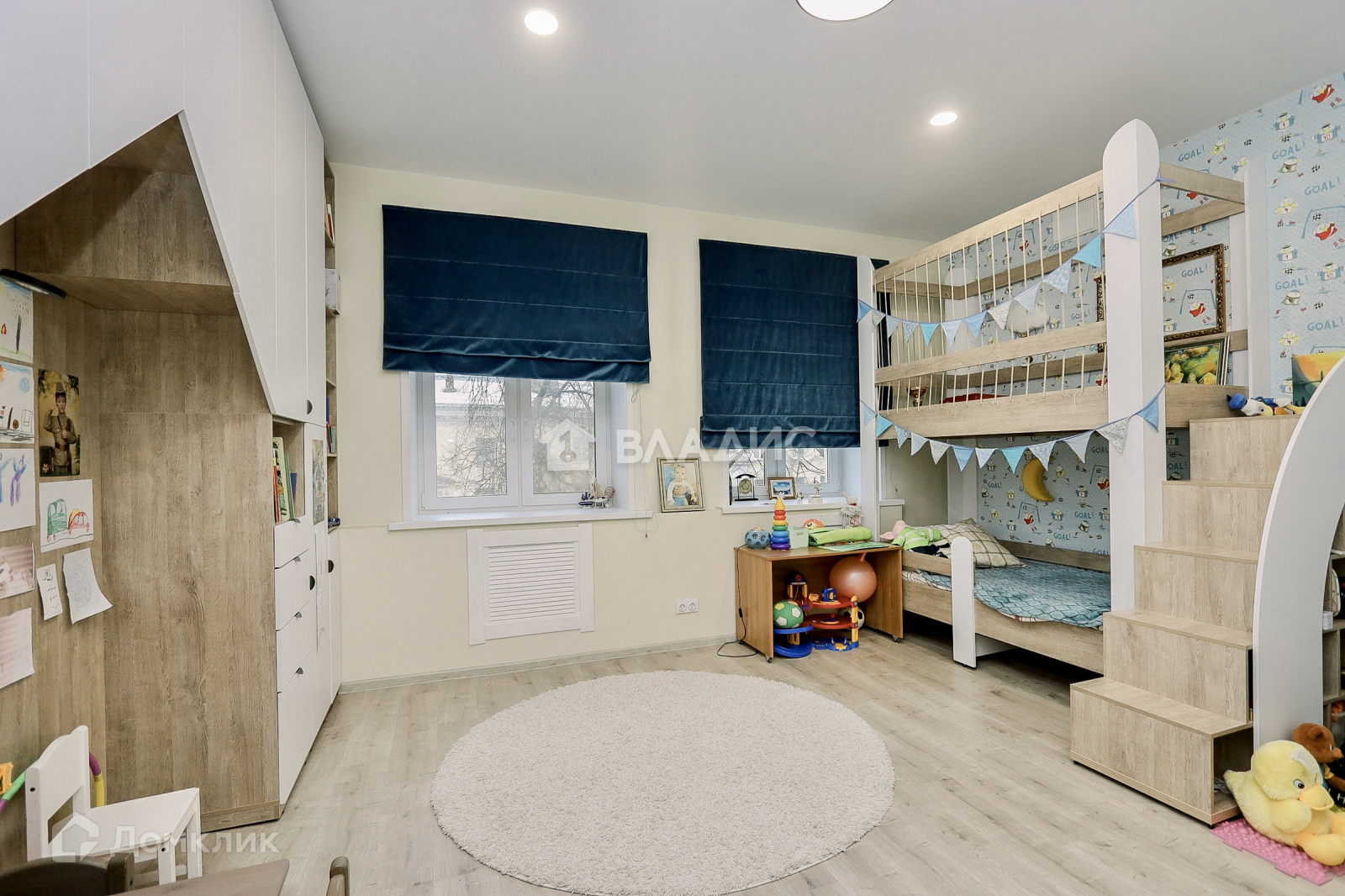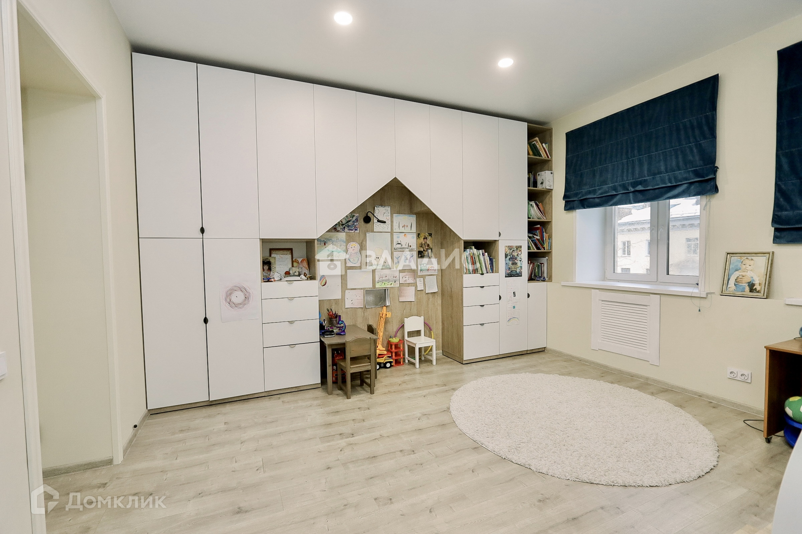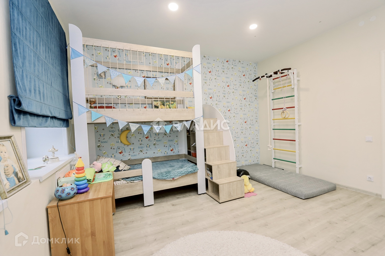 Большая детская комната, в которой есть место для игр.