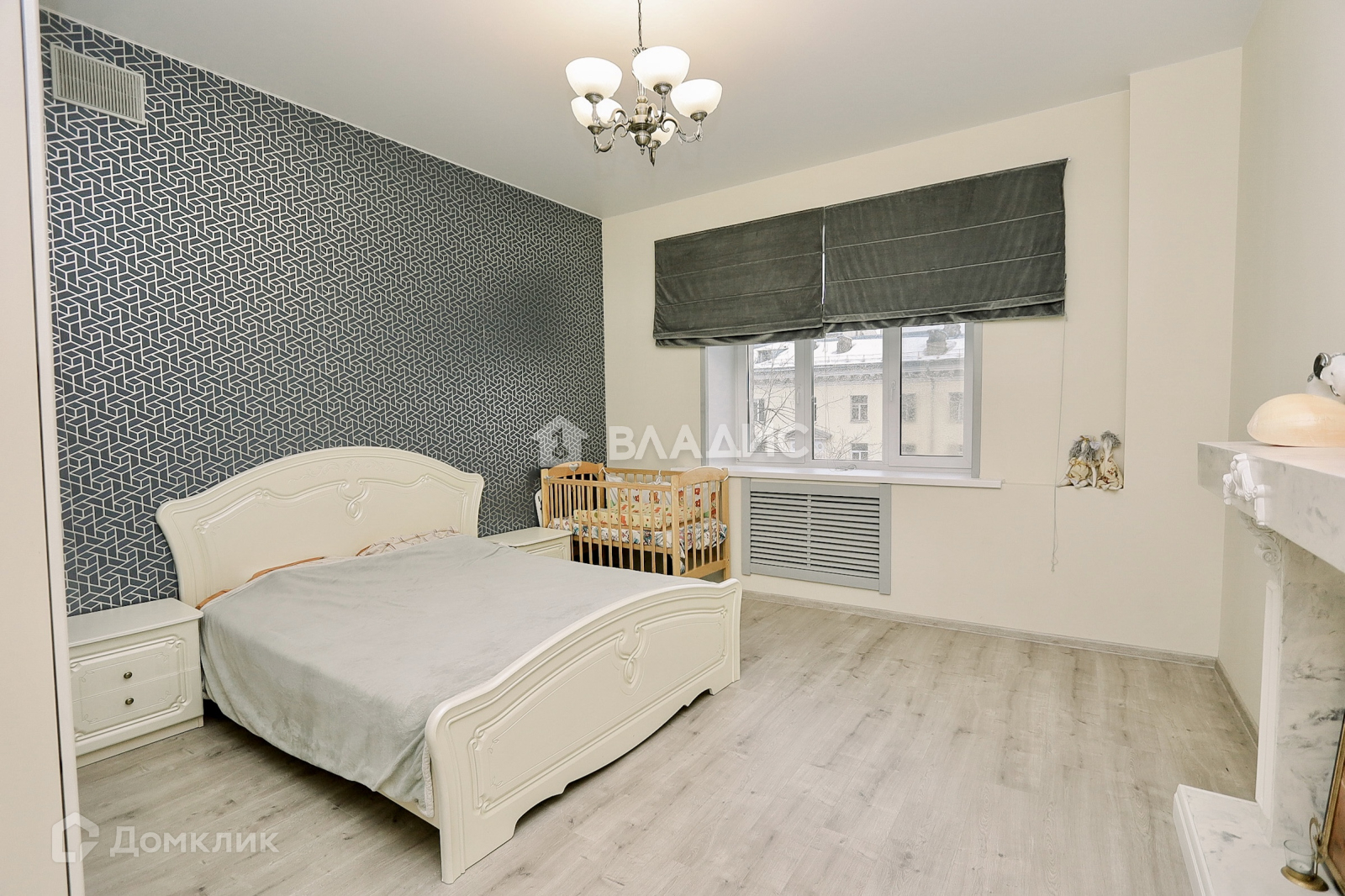 Родительская спальня с декоративным камином позволит максимально расслабиться.