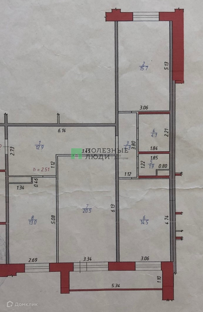 Жилая площадь 50.7 м2