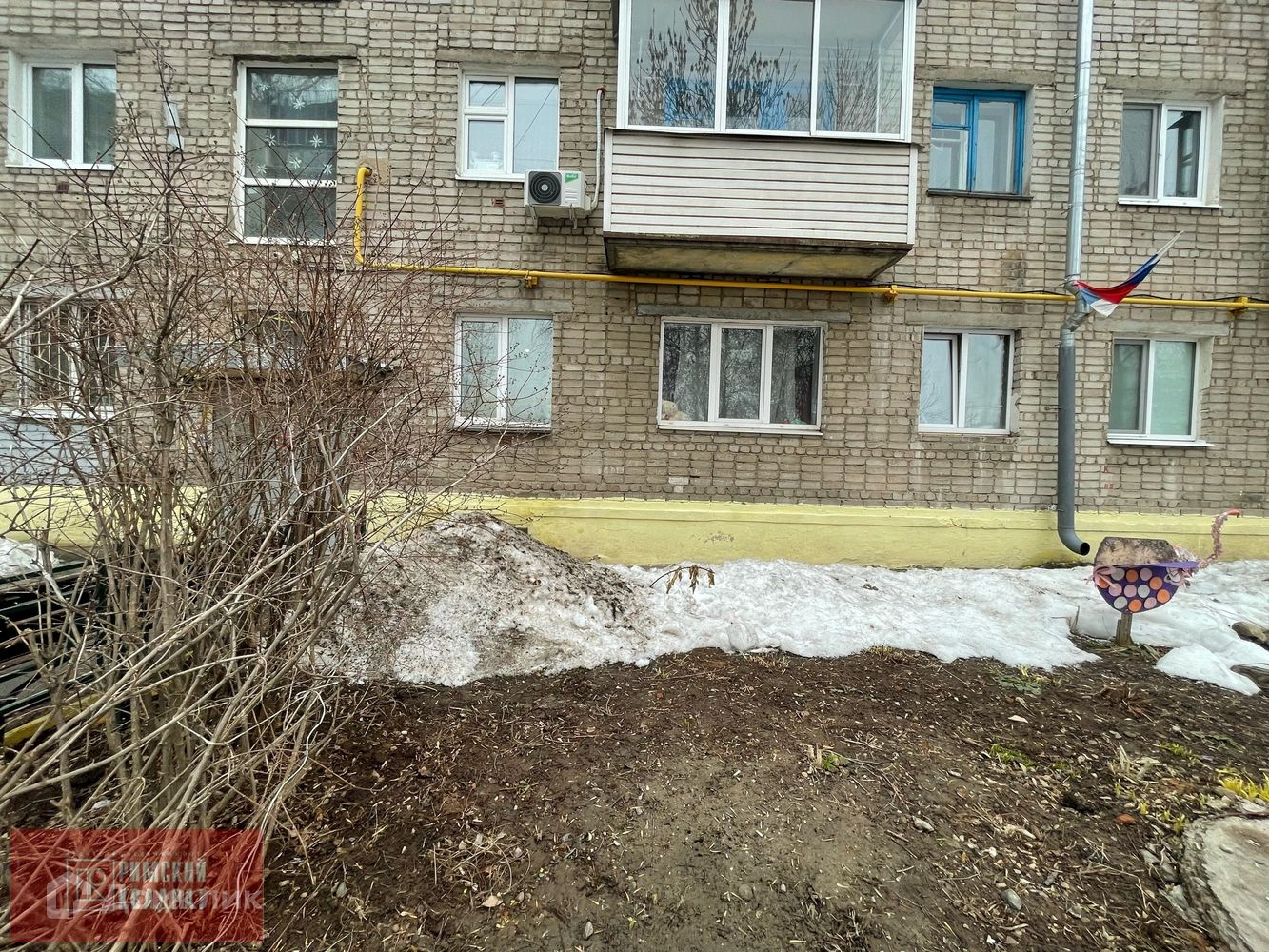Высокий первый этаж, очень удобно для пожилых людей или мамочек с коляской.
