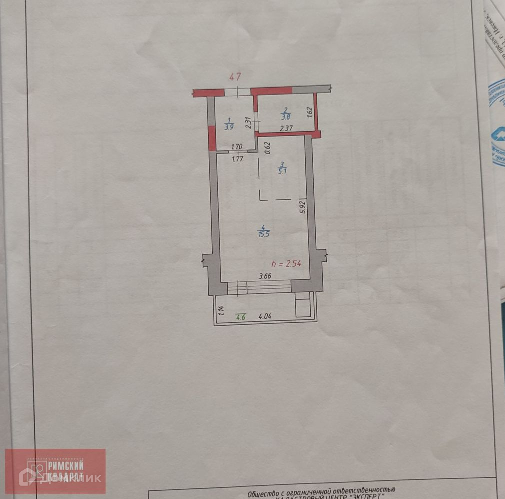 Высота потолков 2.54 м