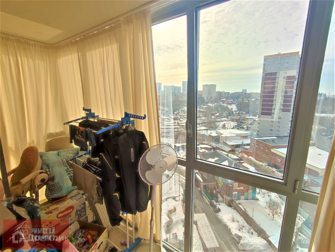 Южная сторона, панорамное остекление балкона, площадь 4.6кв + к общей площади итого 32.9кв