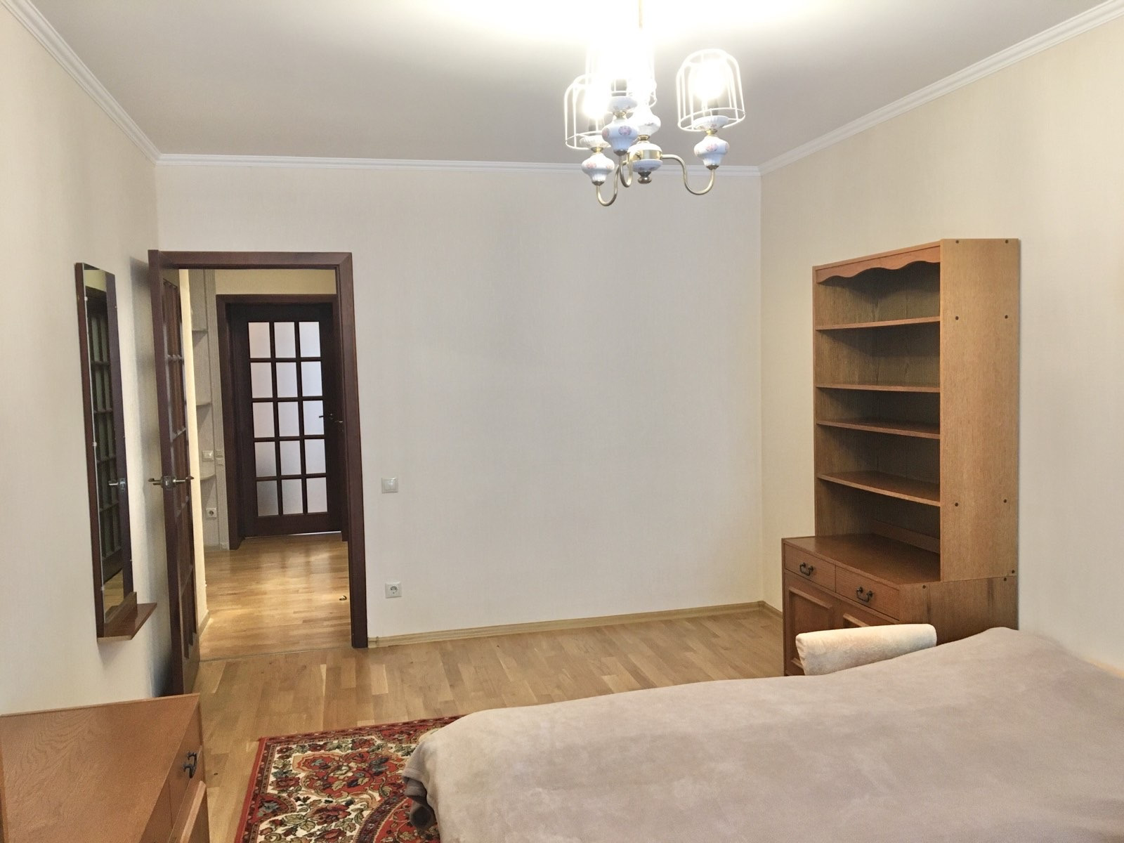 На полу в коридоре и комнатах паркетная доска (дуб).