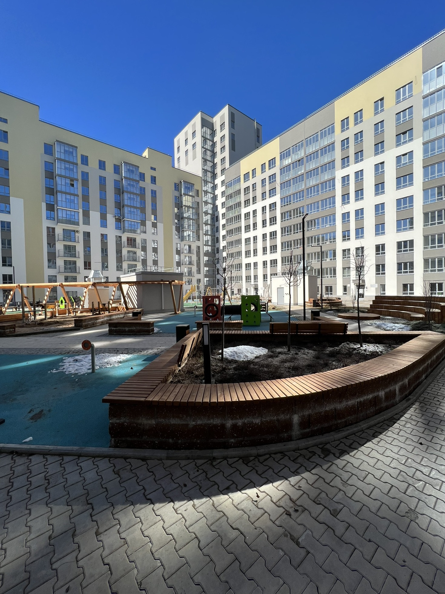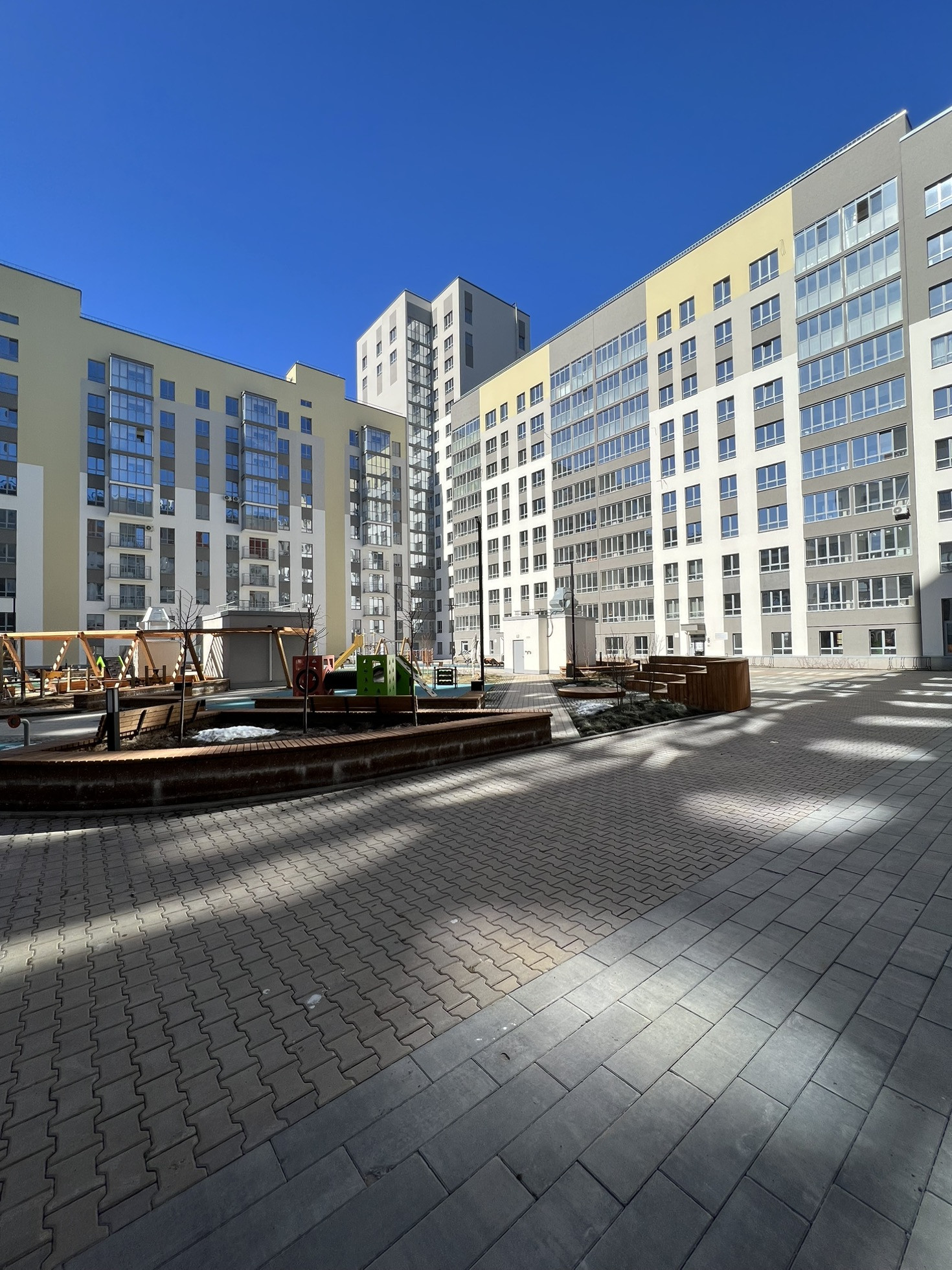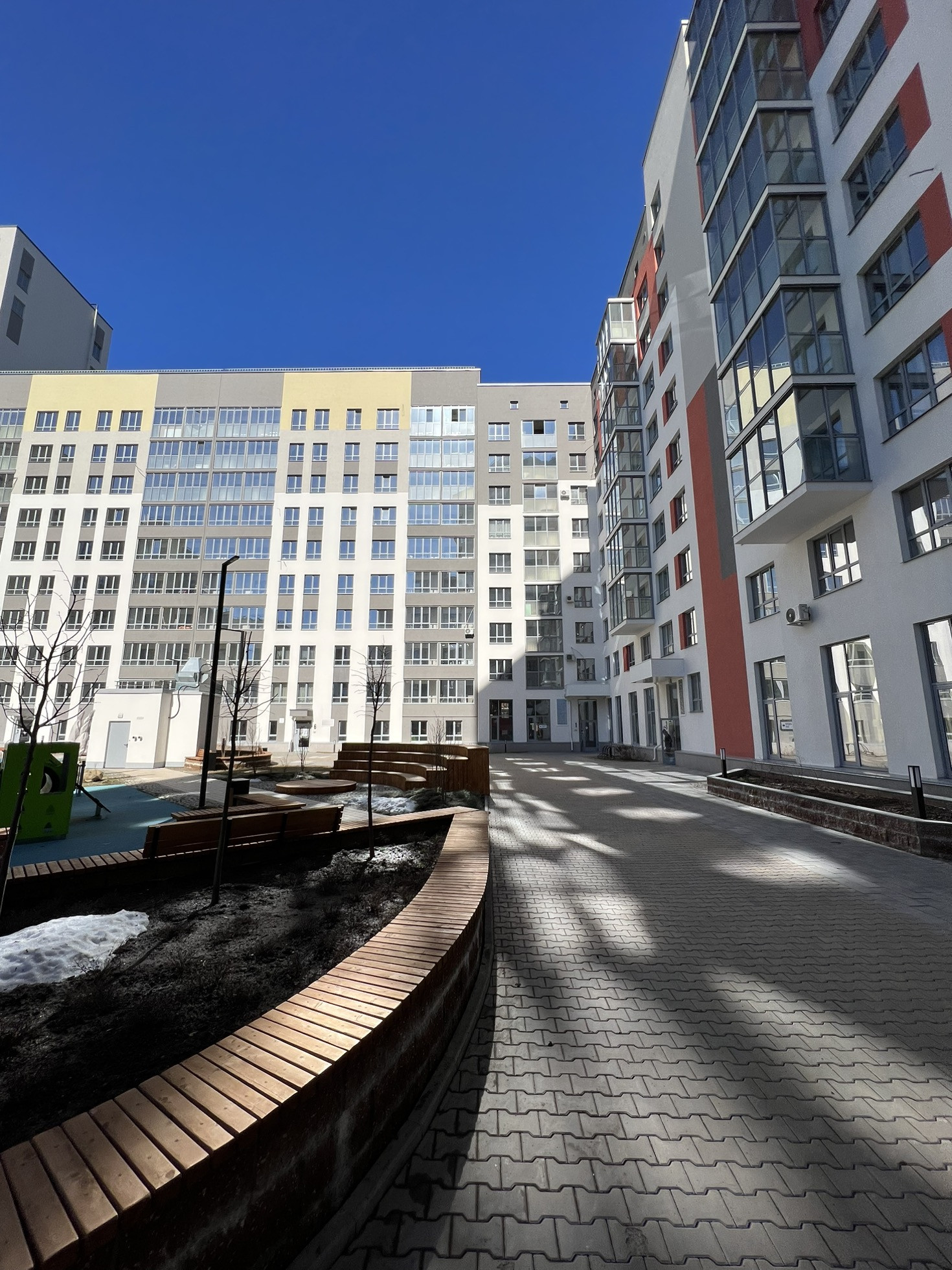 Минимум соседей на этаже, возможность спуска на подземный паркинг не выходя из подъезда, красивые дизайнерские холлы, детские закрытые площадки во дворе!!!