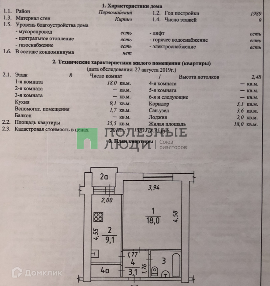 Общая площадь 35.5 м2