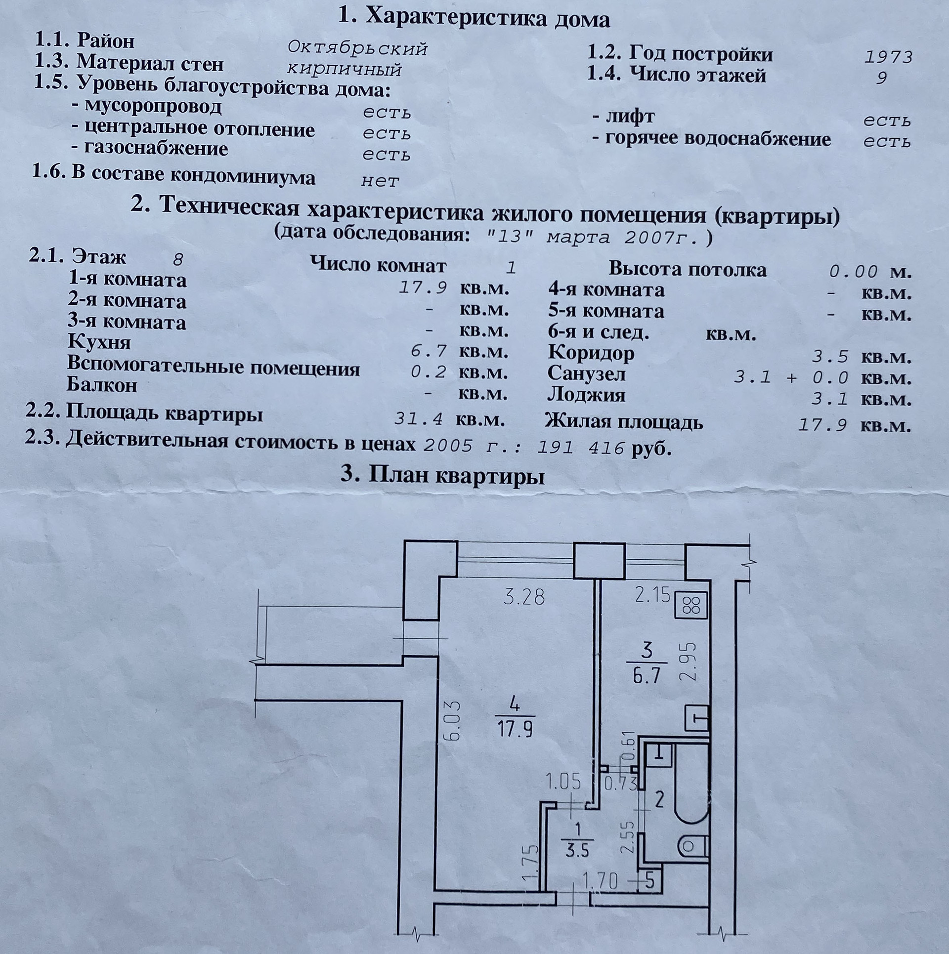 Общая площадь 31.4 м2