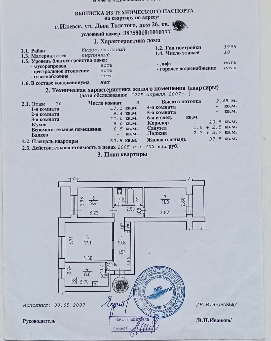 3-комнатная квартира, 60.8 м2, этаж 10 / 10, на продажу в Ижевске, улица Льва Толстого, 26