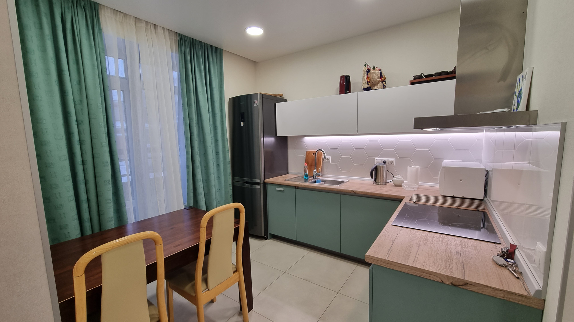 2. Квартира полностью меблирована, из техники - варочная поверхность, духовой шкаф, вытяжка, посудомоечная машина, холодильник, стиральная машина, телевизор. Все это остается при продаже.