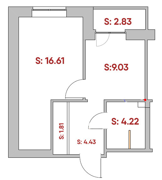 Жилая площадь 16.6 м2