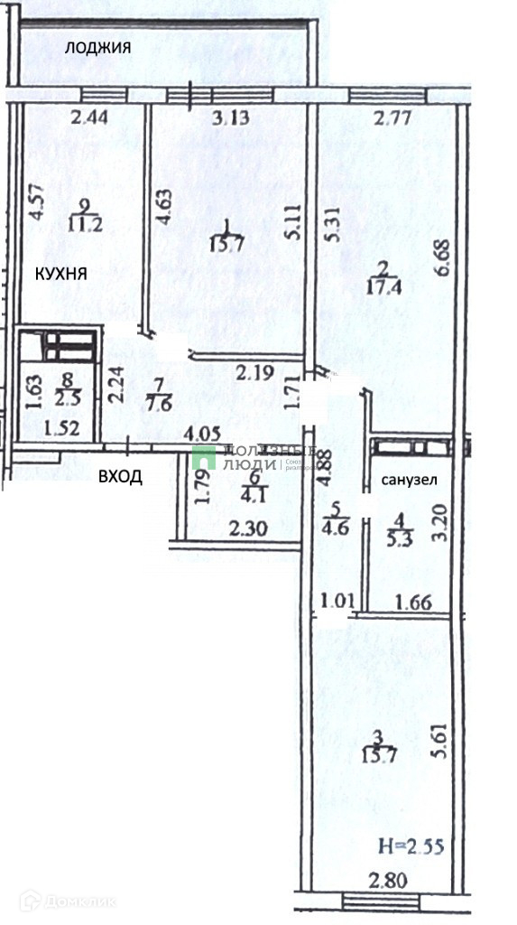 Жилая площадь 55 м2