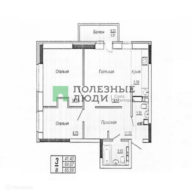 Общая площадь 65.28 м2