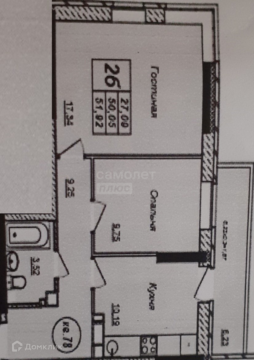 Общая площадь 50.2 м2