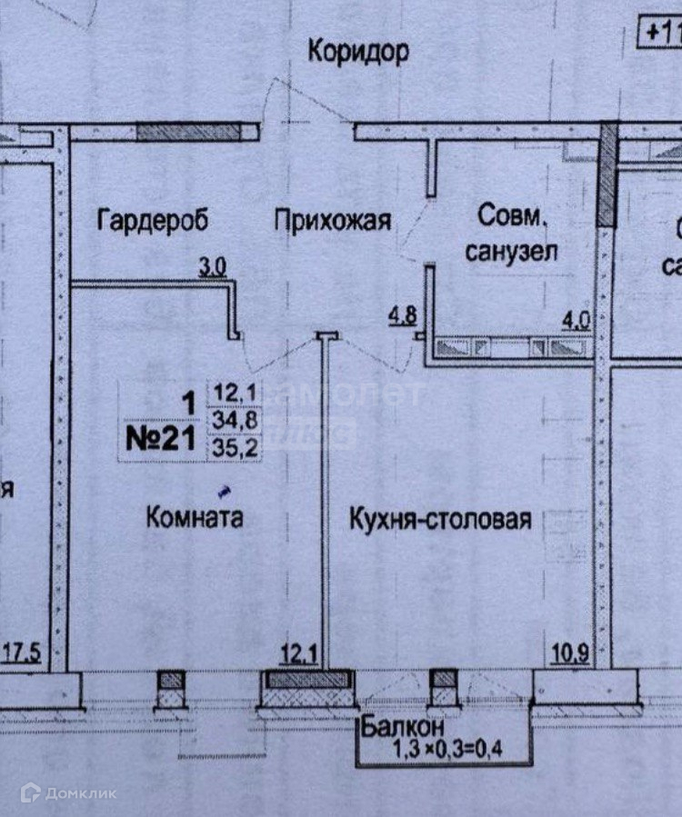 Общая площадь 36.1 м2