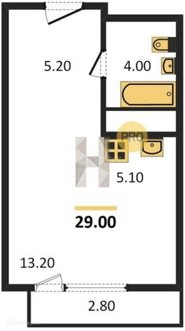 Общая площадь 29 м2