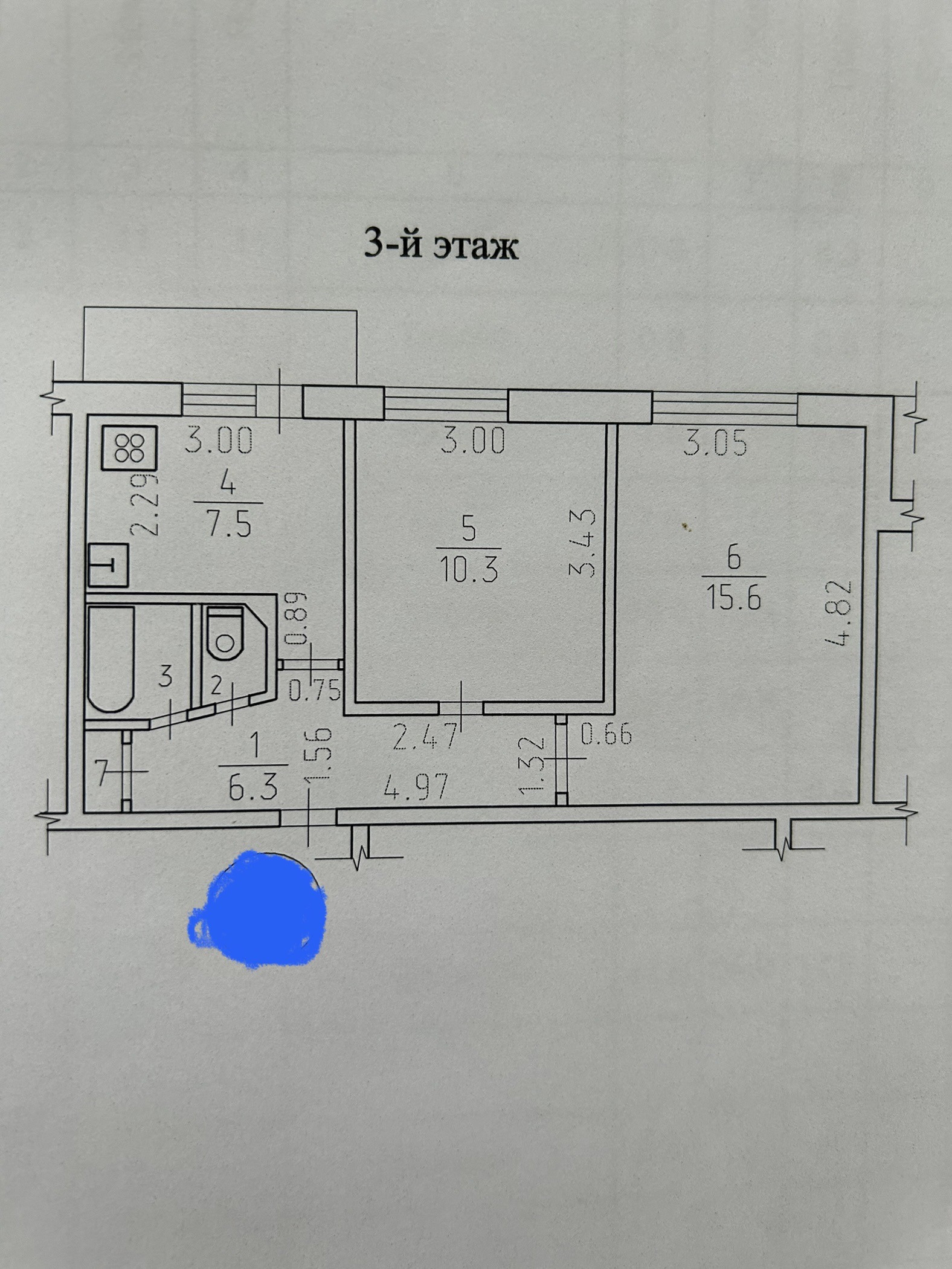 Жилая площадь 15.6 м2