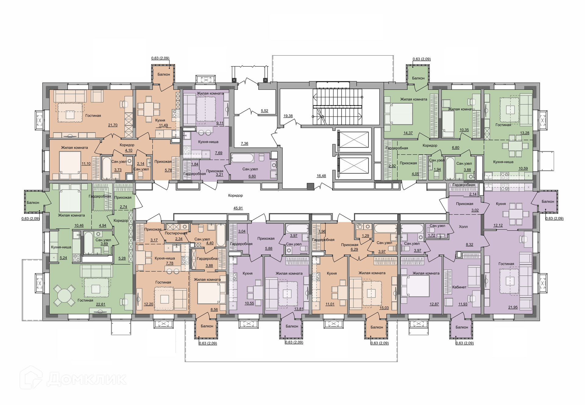 Общая площадь 60.51 м2