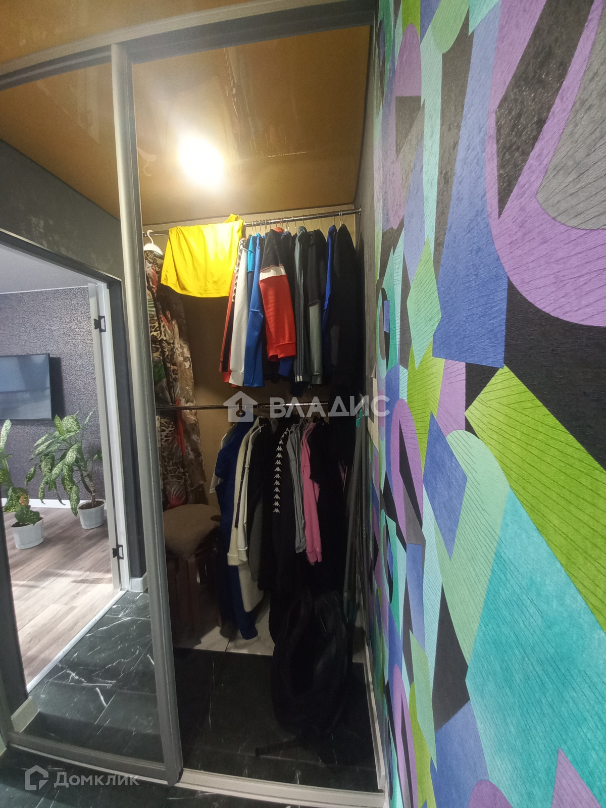 В квартире остается кухонный гарнитур и все встроенные шкафы.