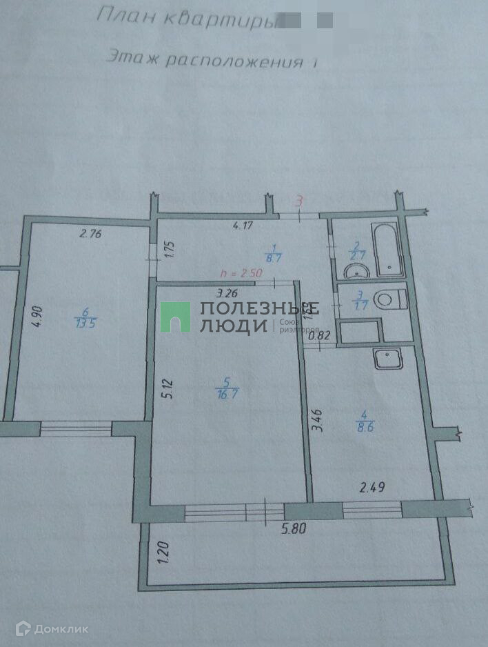 Общая площадь 51.9 м2