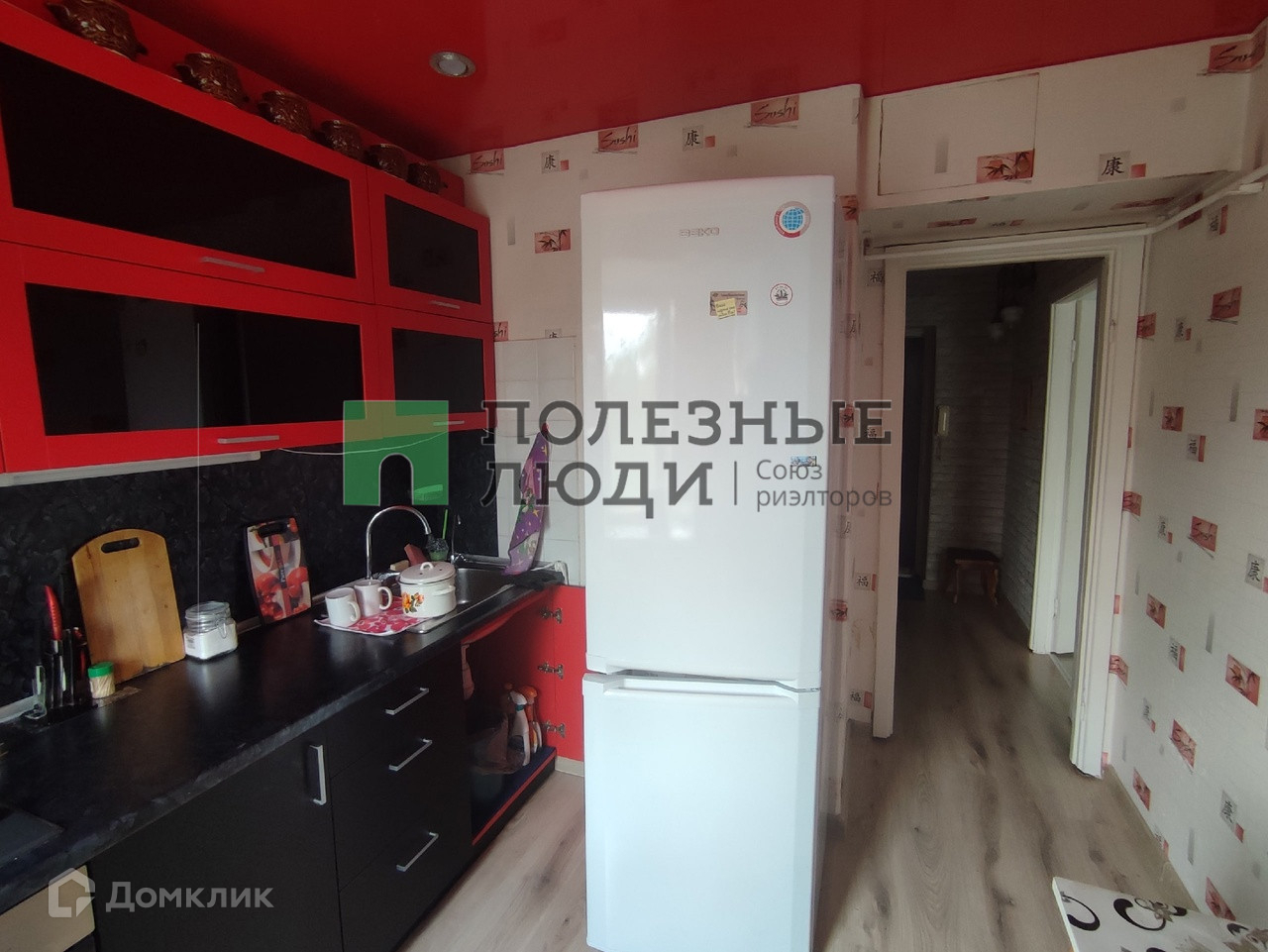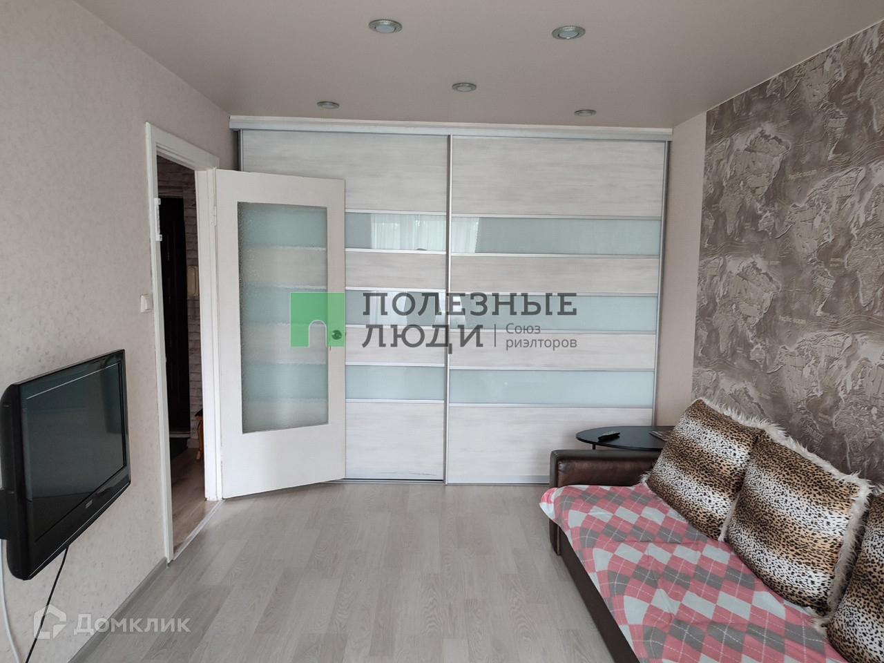 В квартире остается встроенная кухня и большой шкаф-купе в комнате.