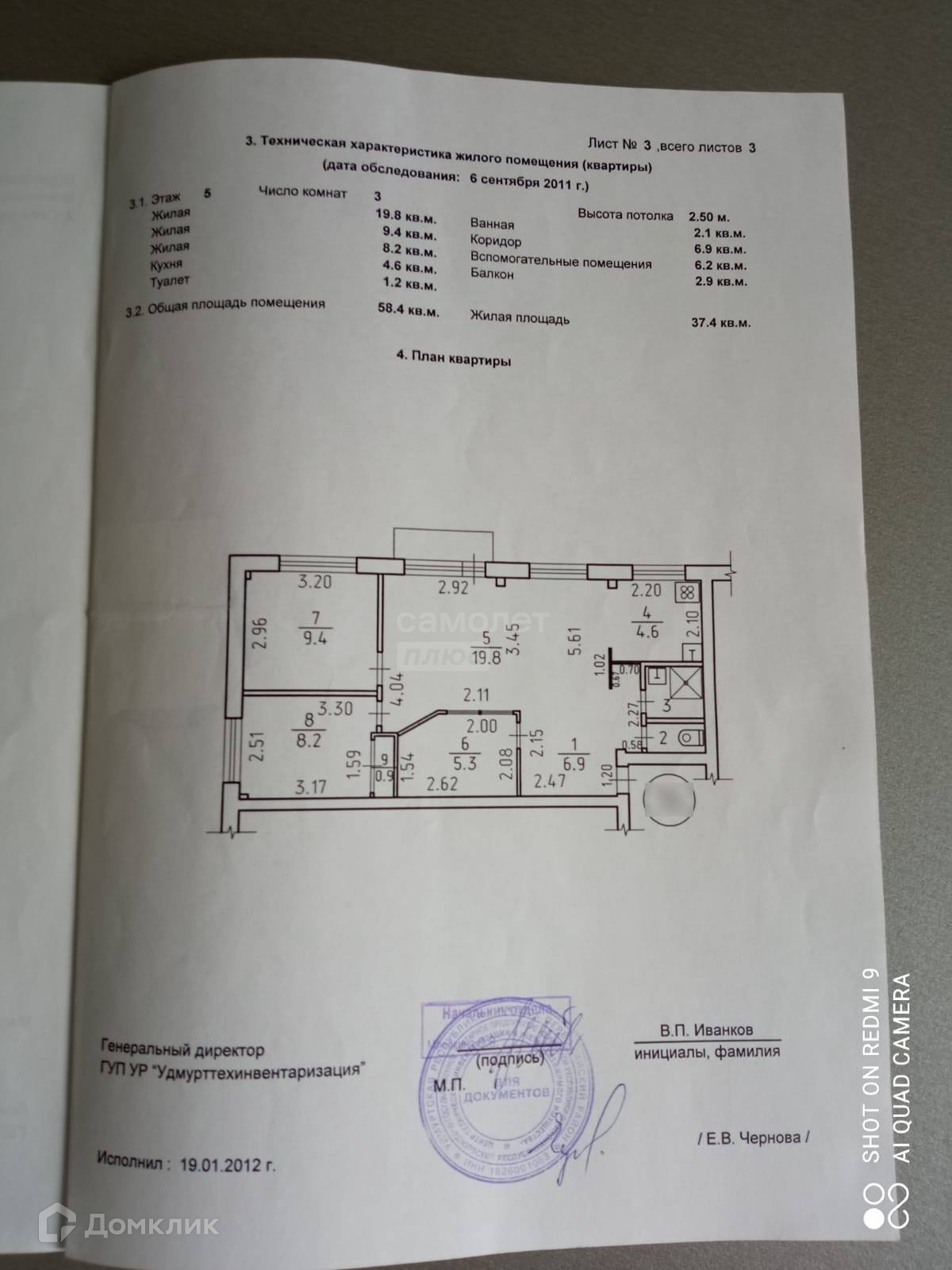 Общая площадь 58.4 м2