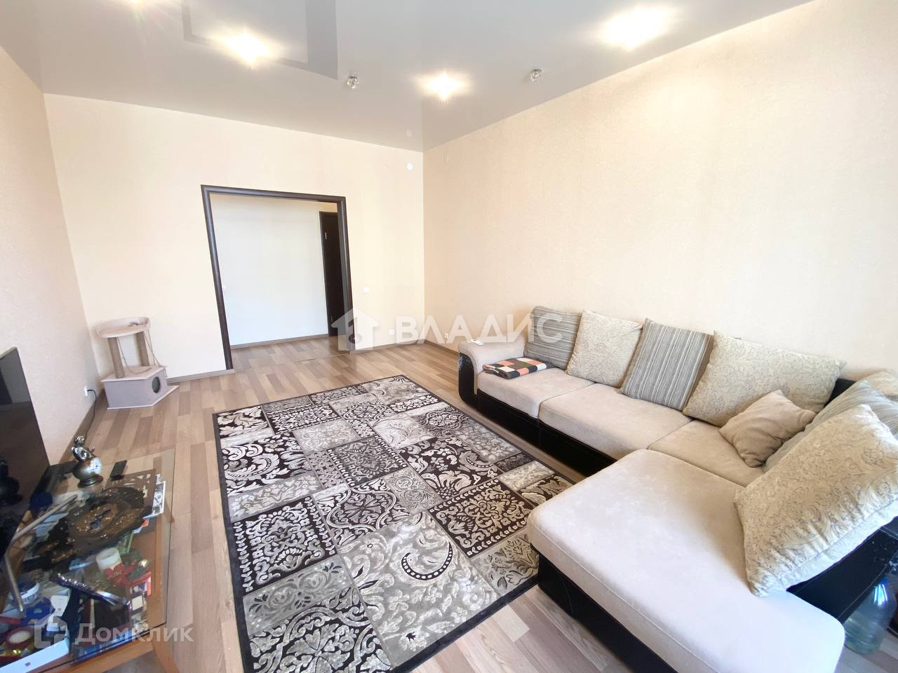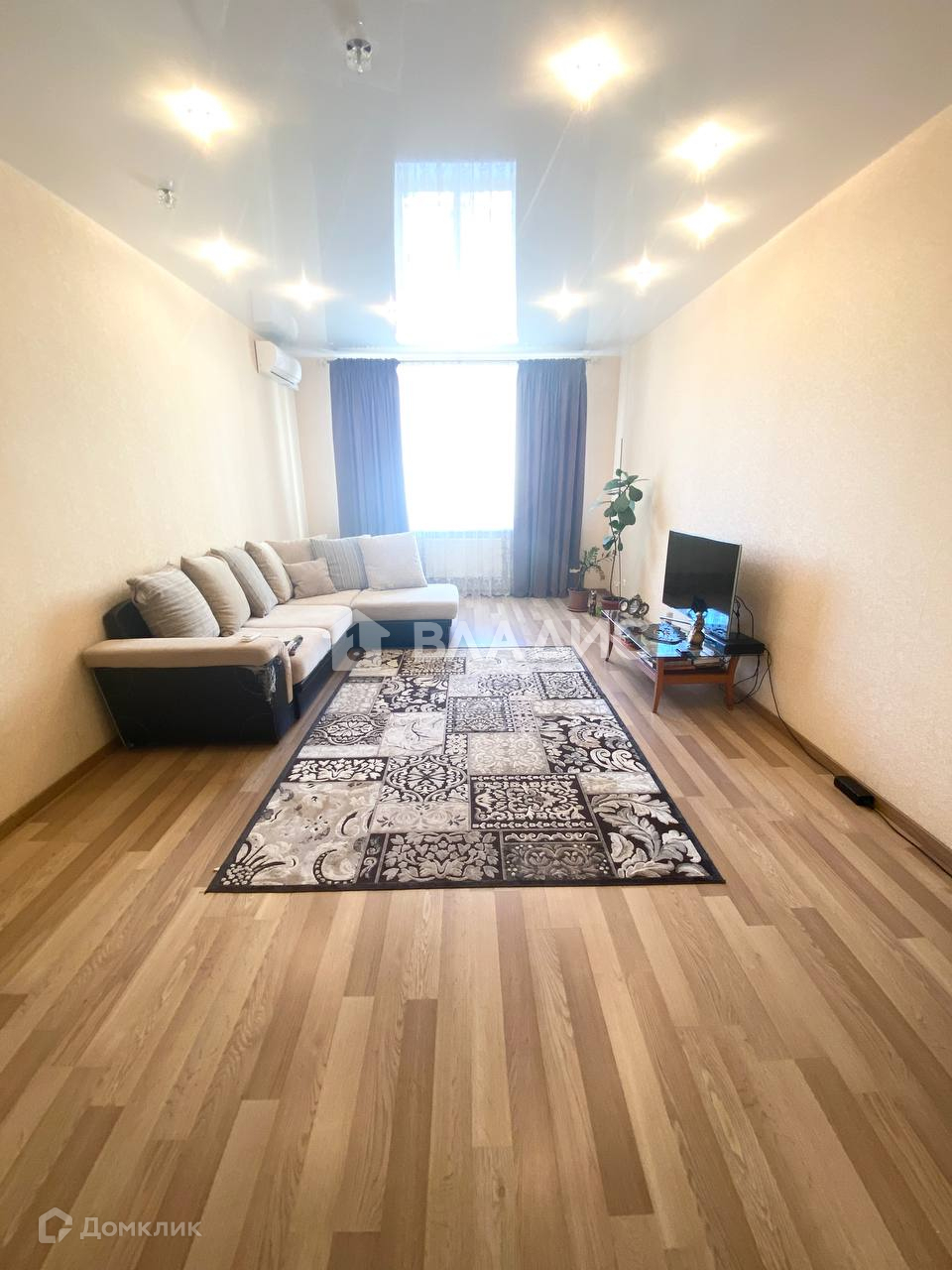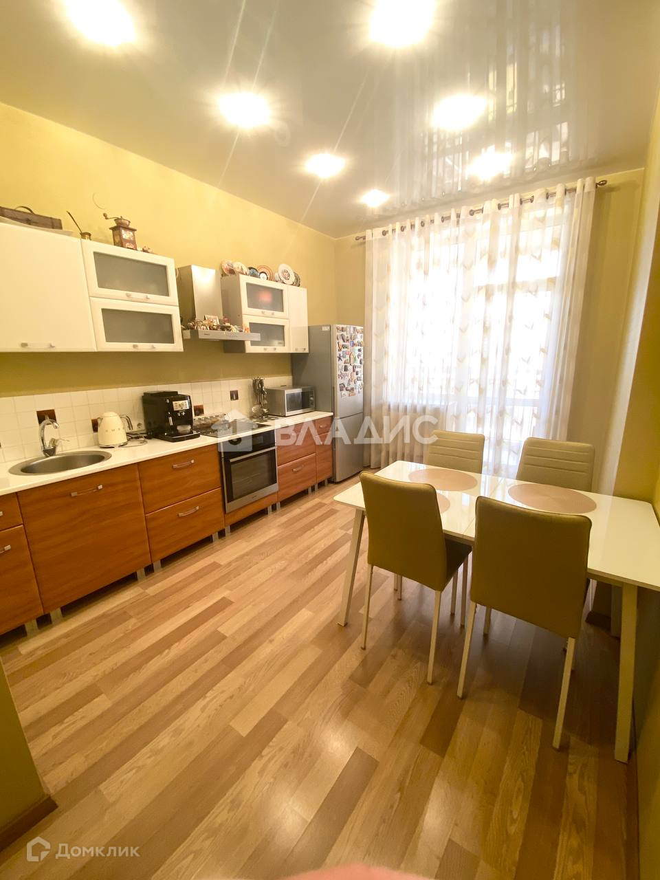 +В квартире выполнен РЕМОНТ(на полу ламинат, натяжные потолки с многофункциональным освещением, на стенах обои, 2 сан узла в кафеле).