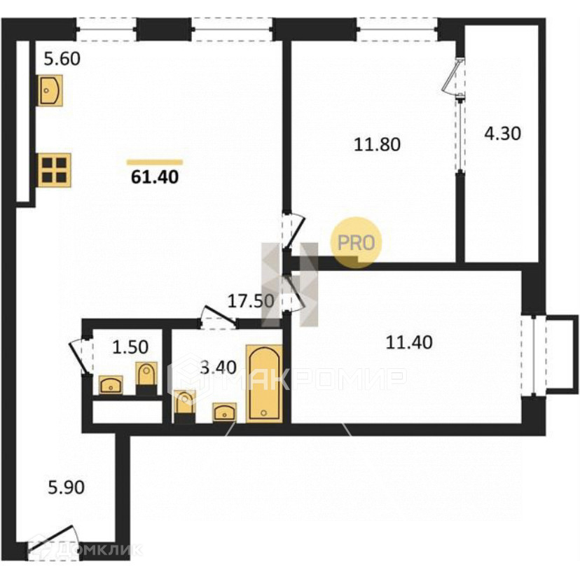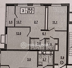 Общая площадь 61.4 м2