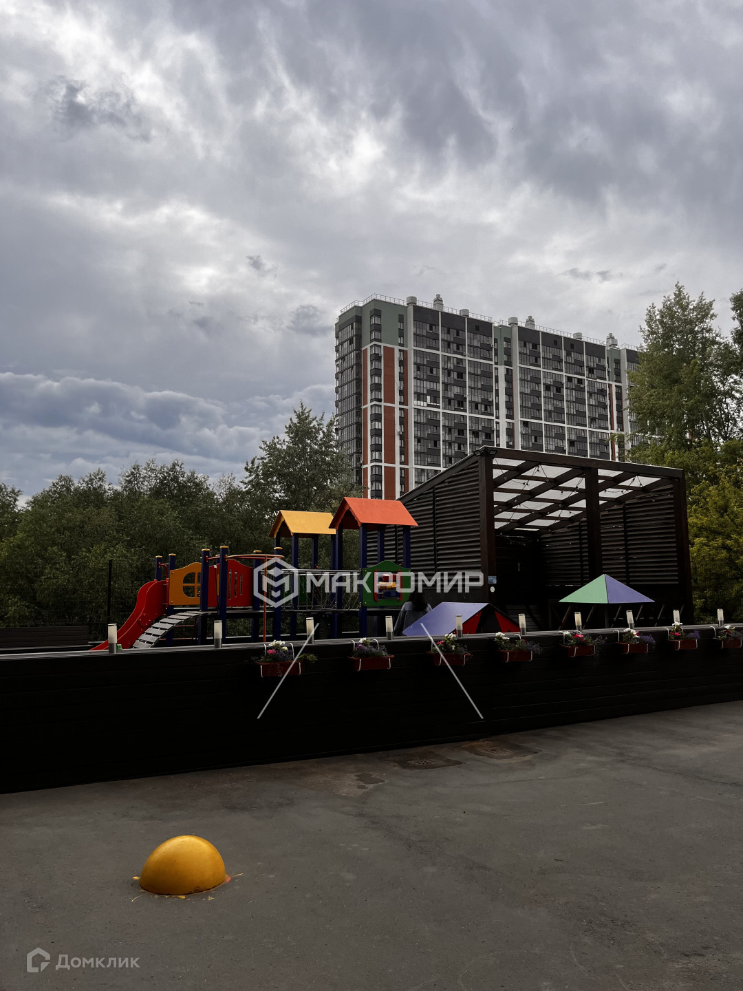 Во дворе обустроены зона лобби, современная детская площадка и летняя беседка.