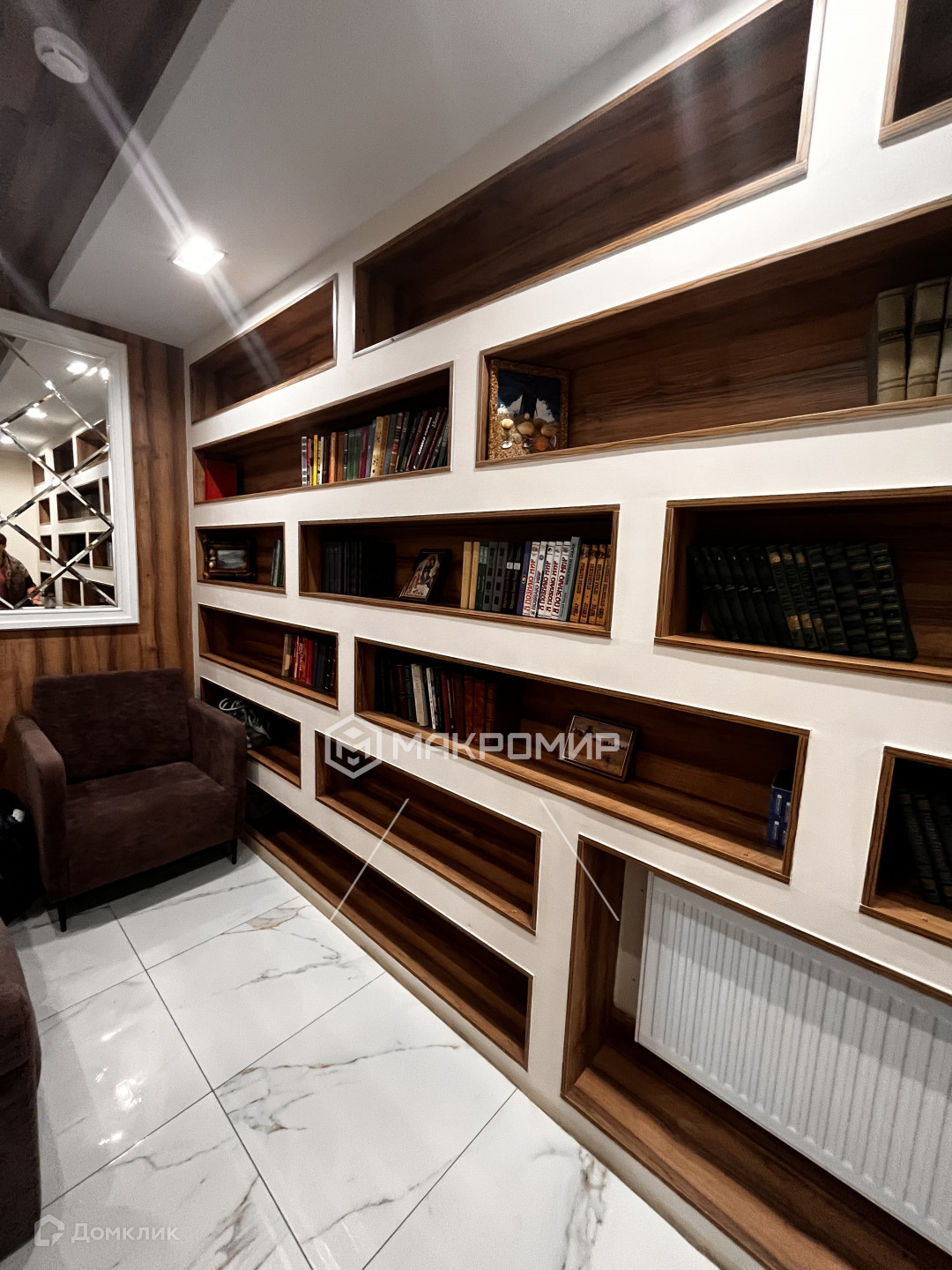 квартира расположена на среднем этаже с видовыми окнами на акваторию пруда.