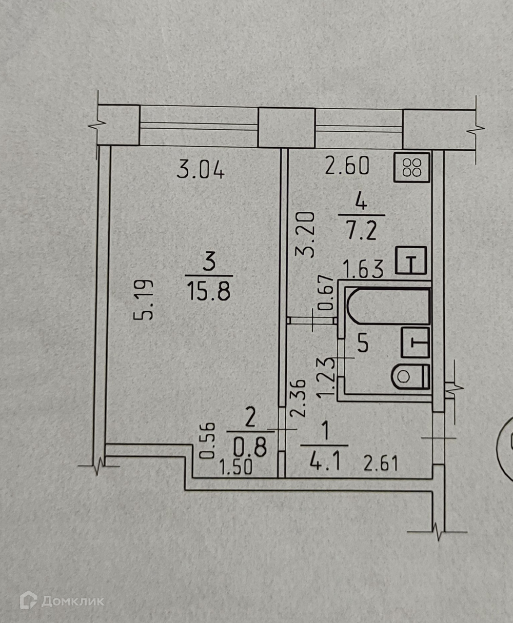 Общая площадь 30.8 м2