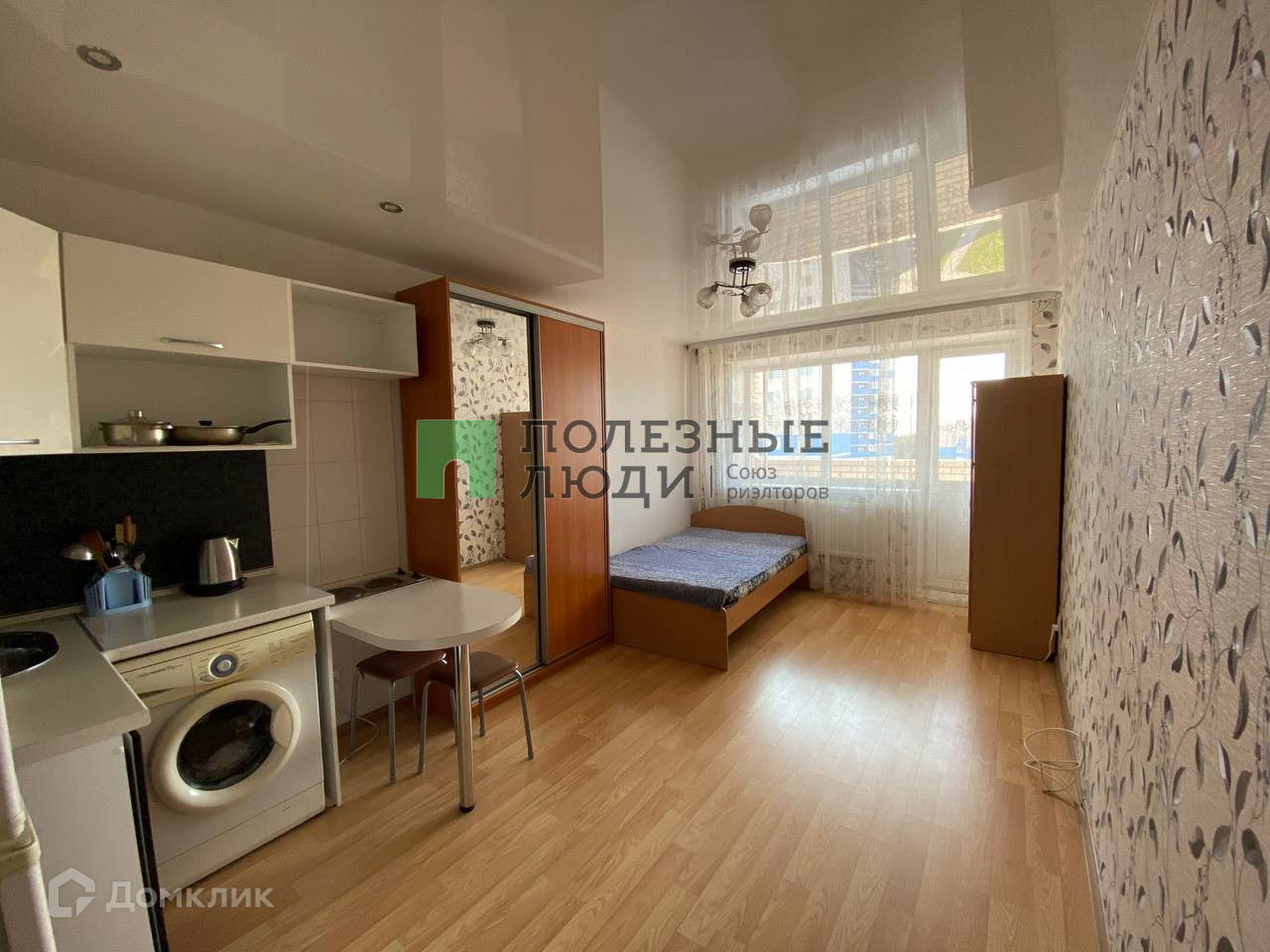 Готовый вариант – заезжай и живи, остается кухонный гарнитур, стол, стиральная машина, холодильник, кровать, шкаф-купе с зеркалом