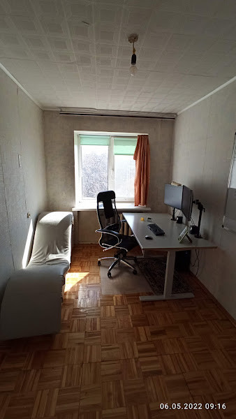 Квартира солнечная, окна пластиковые. Балкон выходит на южный торец дома, остальные окна - на восток во двор, на зеленые деревья.